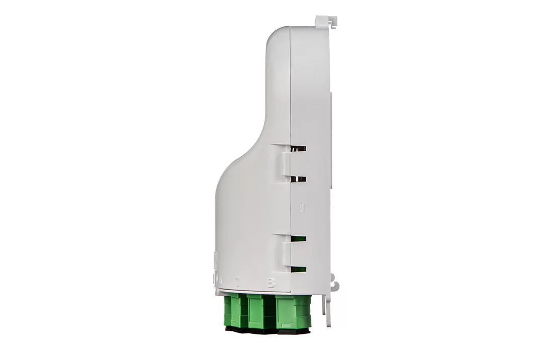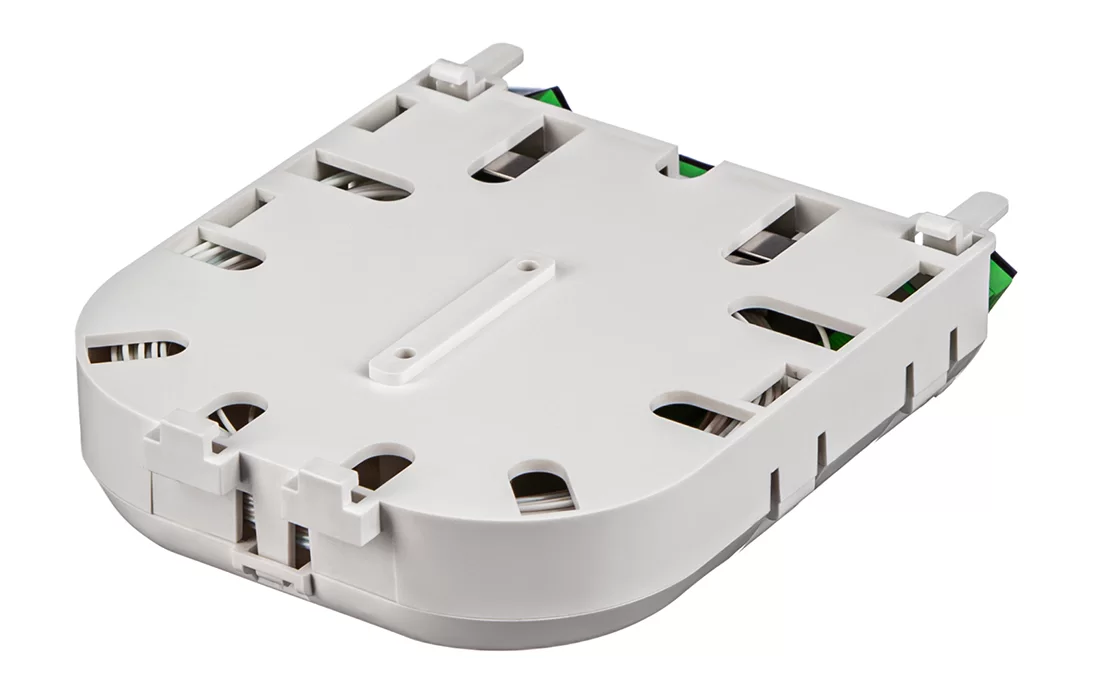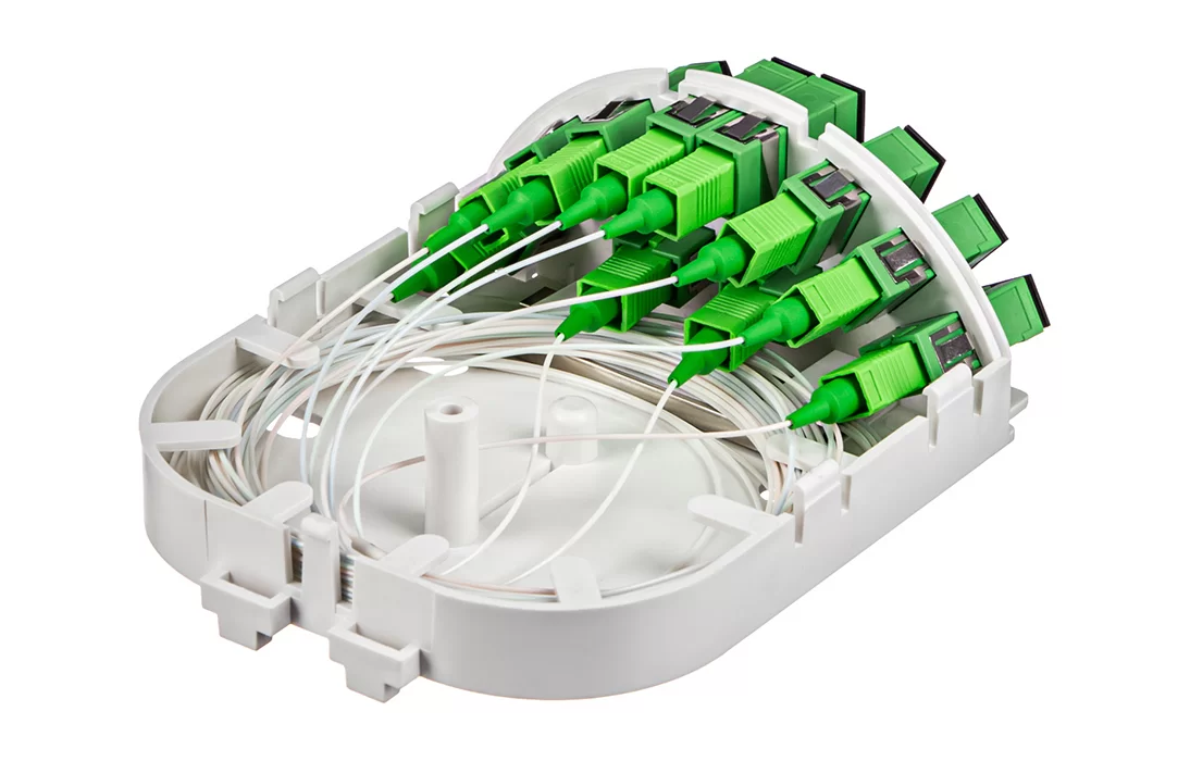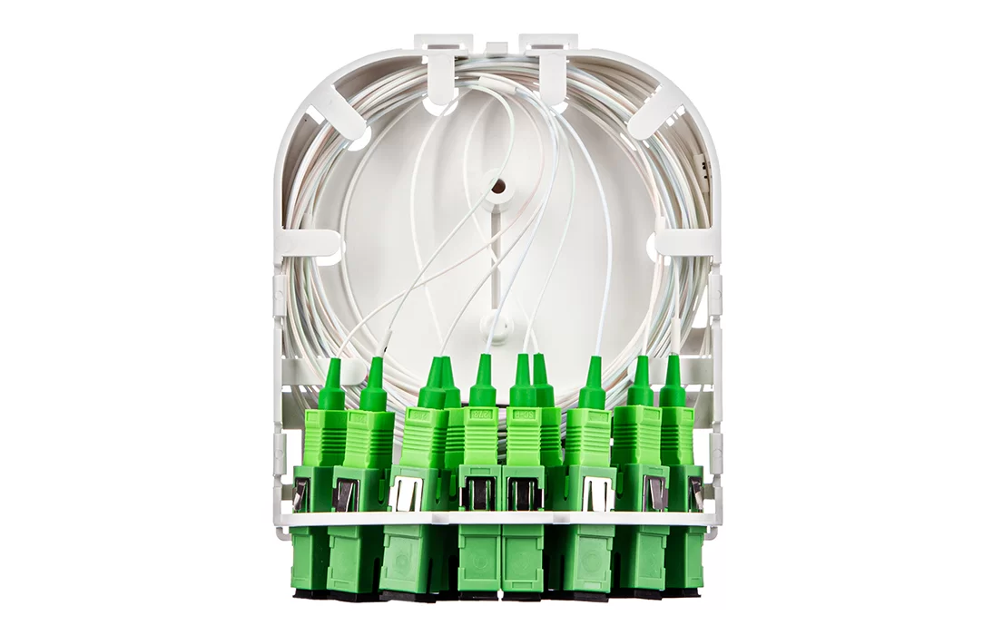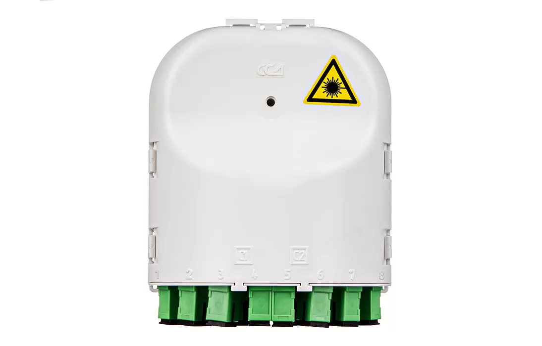 Представляет из себя пластиковый корпус с местами для установки разветвителей и органайзерами для укладки волокон. На лицевой панели расположена адаптерная планка на 10 адаптеров SC типа. Закрывается защитной крышкой, выполненной как и корпус из пластика белого цвета.