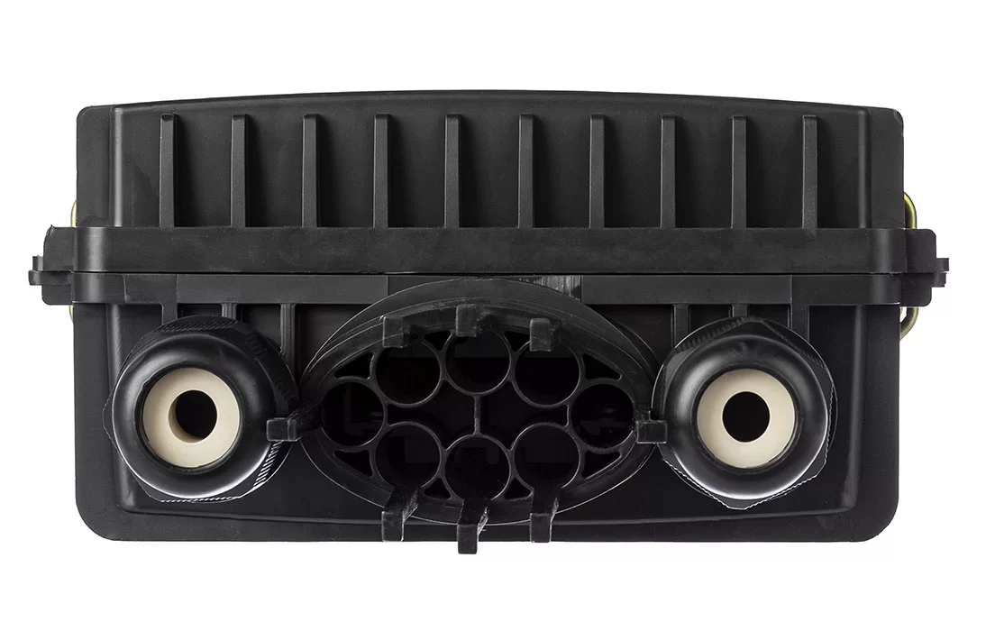• пылезащищенный вывод до 8 дроп-кабелей круглого профиля диаметром до 5 мм или прямоугольного профиля типа «бабочка».