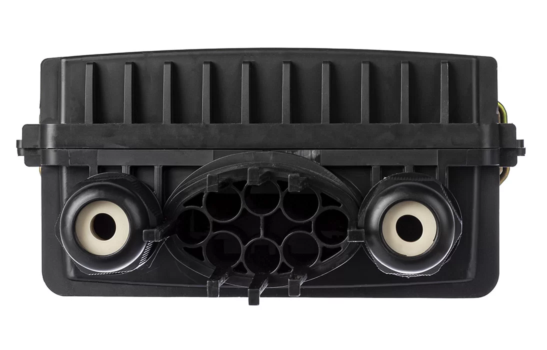 - пылезащищенный вывод до 8 дроп-кабелей круглого профиля диаметром до 5 мм или прямоугольного профиля типа «бабочка».