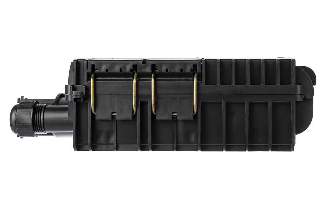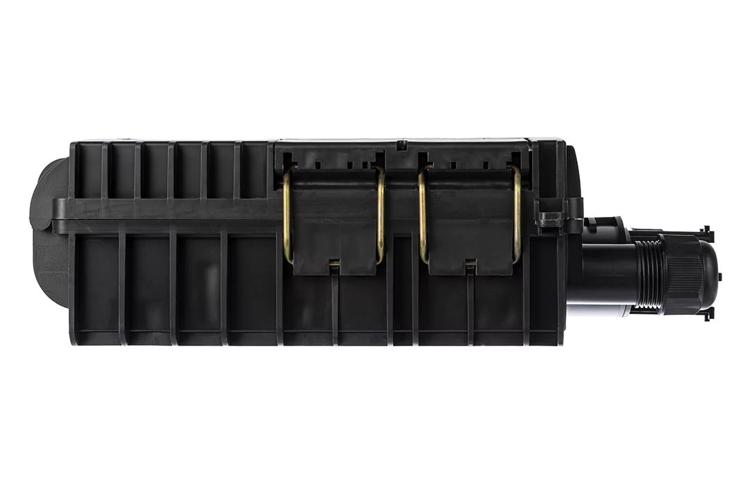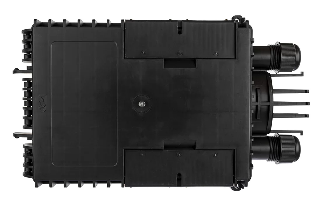 Выполнена из пластмассы и имеет пыле-брызгозащищенную конструкцию (ввод ОК и вывод абонентских дроп-кабелей производится с одной стороны).