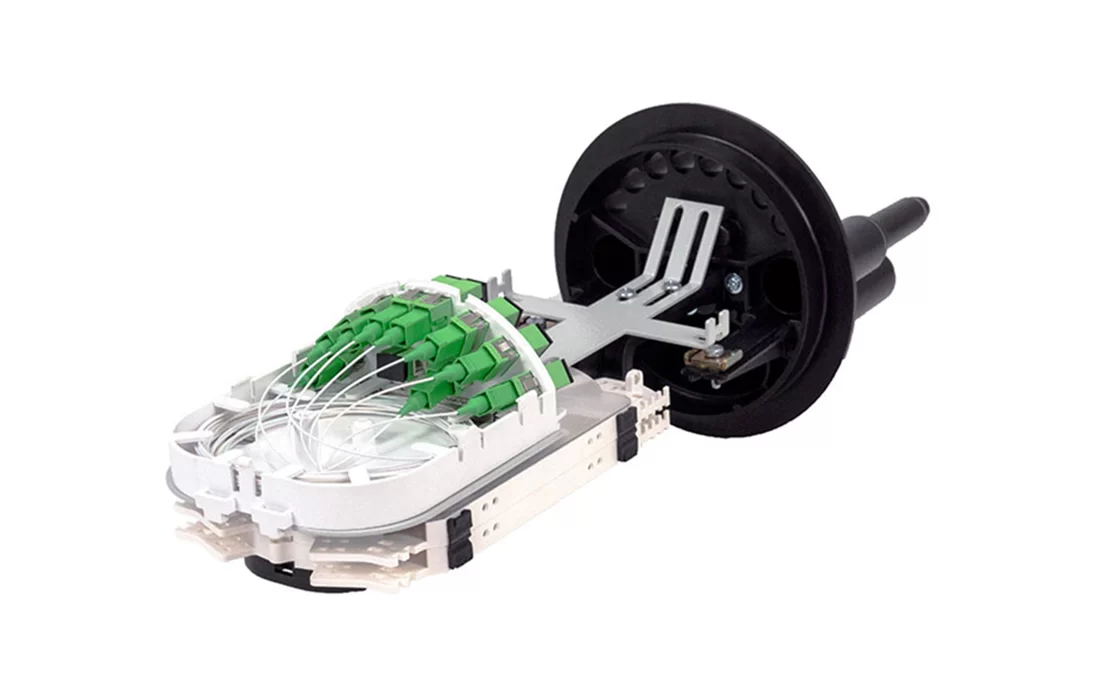 В муфте установлен специальный сплиттерный модуль СМ4, в который в зависимости от комплектации могут быть установлены 10 адаптеров SC-типа и один PLC разветвитель 1х8 или два PLC разветвителя 1х4 оконцованных разъёмами SC типа.