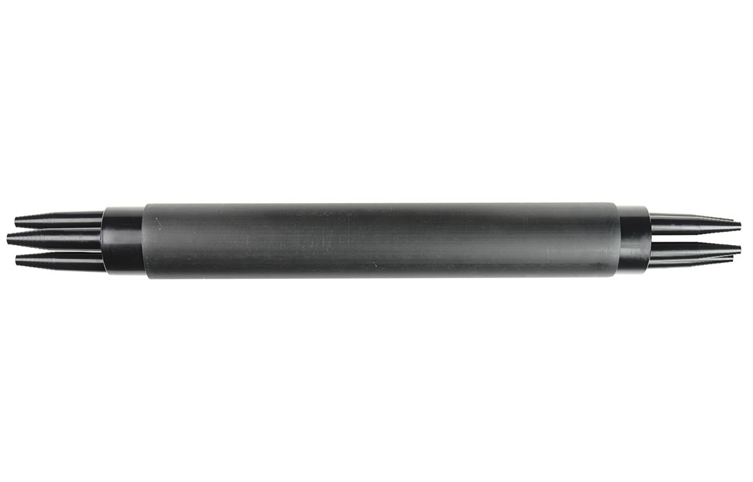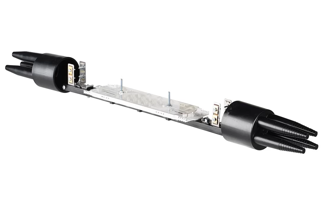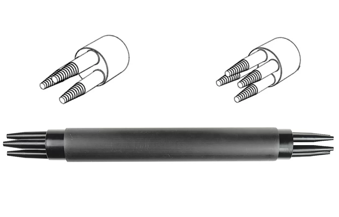 Способ герметизации вводов кабелей, осуществляется с помощью термоусаживаемых трубок ТУТ. Круглые патрубки на оголовнике муфты изначально герметичны и имеют ступенчатую форму с разными диаметрами. Срезая патрубок в определенном месте можно подобрать отверстие максимально близкое к диаметру вводимого кабеля. Таким образом, исключается излишнее натяжение ТУТ после усадки при вводе относительно тонких кабелей. Все патрубки муфты оснащены также индивидуальными узлами крепления ЦСЭ.