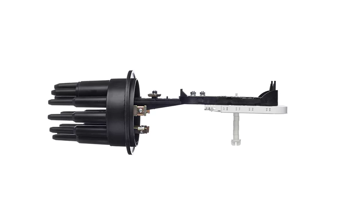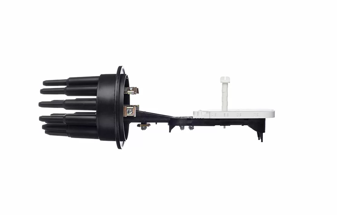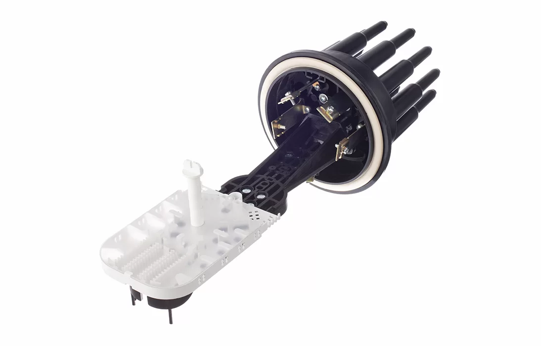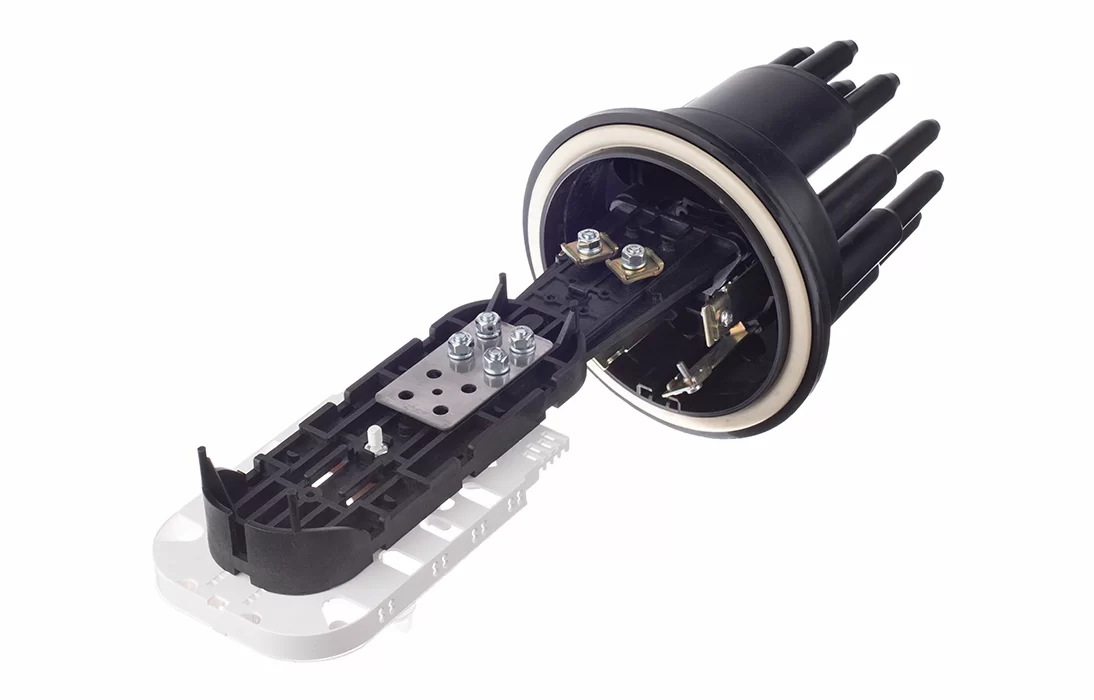 Способ герметизации вводов кабелей, осуществляется с помощью термоусаживаемых трубок ТУТ. Круглые патрубки на оголовнике муфты изначально герметичны и имеют ступенчатую форму с разными диаметрами. Срезая патрубок в определенном месте можно подобрать отверстие максимально близкое к диаметру вводимого кабеля. Таким образом, исключается излишнее натяжение ТУТ после усадки при вводе относительно тонких кабелей. Все патрубки муфты оснащены также индивидуальными узлами крепления ЦСЭ.