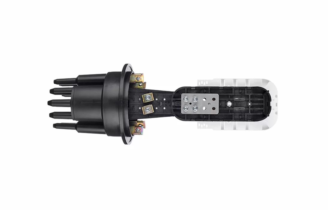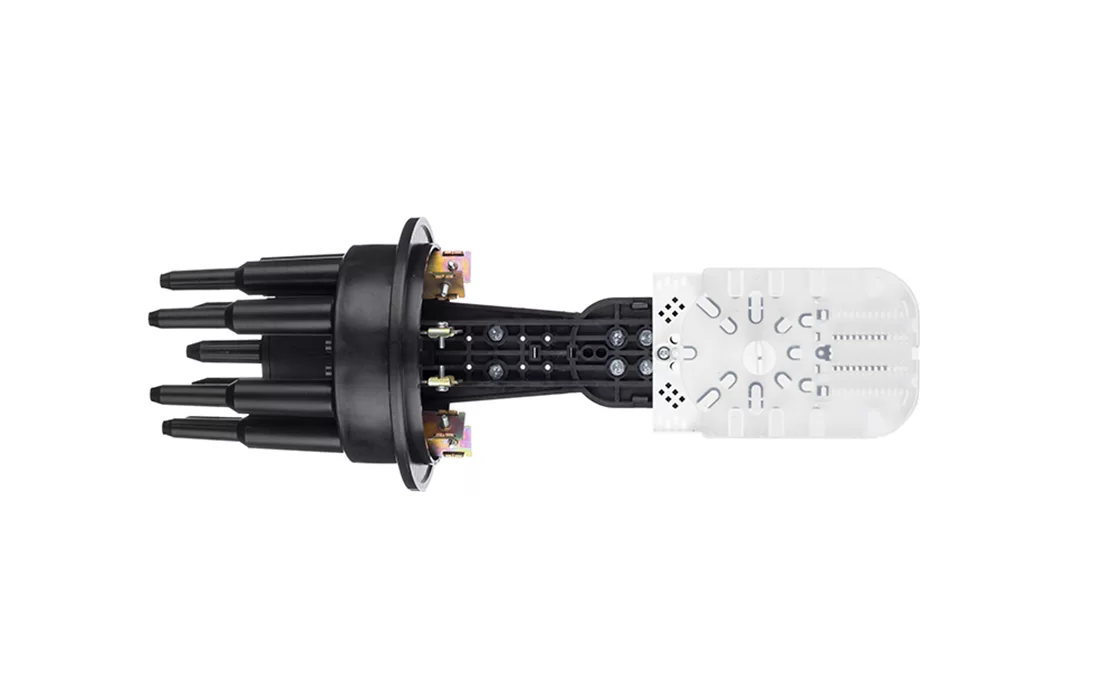 Предназначена для монтажа подвесных самонесущих ОК и оптических кабелей с вынесенным силовым элементом типа «8», а также городских кабелей любых конструкций, в том числе и с броней из стальной гофрированной ленты. В муфте предусмотрен овальный ввод для транзитной петли оптических модулей без разрезания. Выкладка петли модулей осуществляется на лотке с противоположной стороны от кассет.