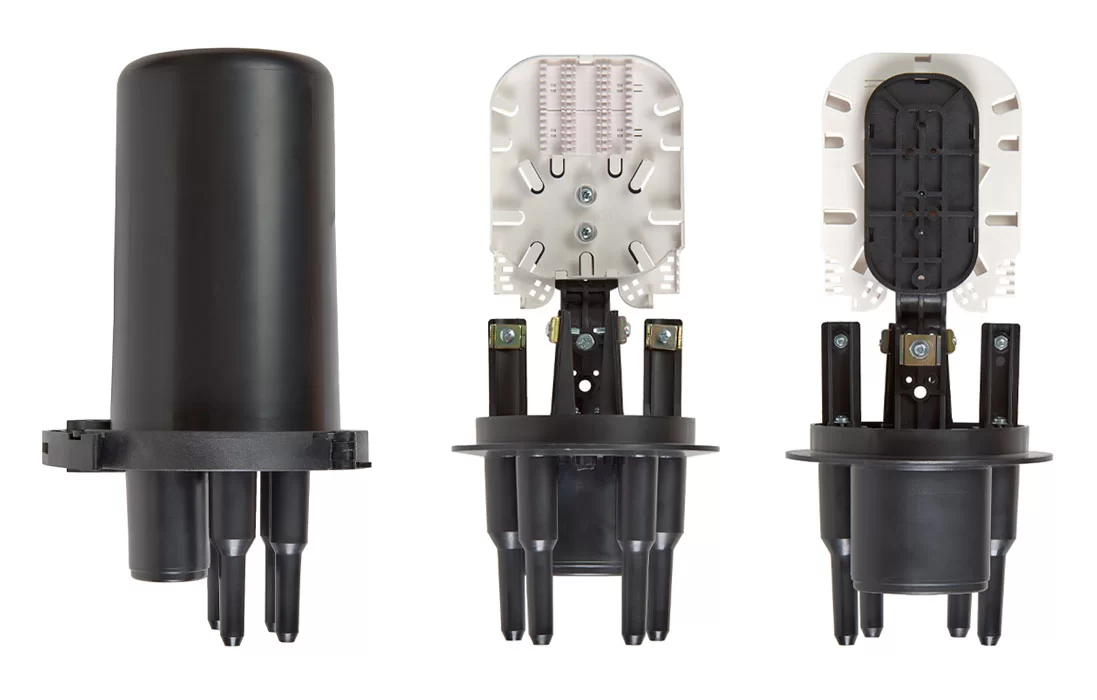 Предназначена для монтажа подвесных самонесущих ОК, оптических кабелей с вынесенным силовым элементом типа «8» емкостью до 72 ОВ. В муфте предусмотрен овальный ввод для транзитной петли оптических модулей без разрезания. Выкладка петли модулей осуществляется на лотке с противоположной стороны от кассет.