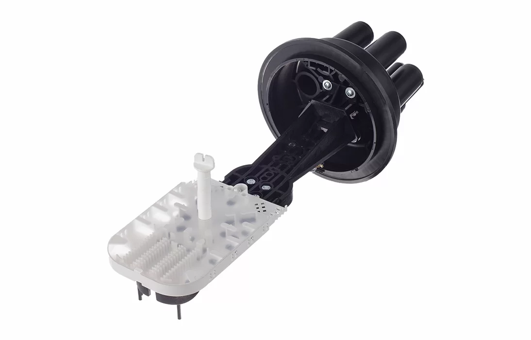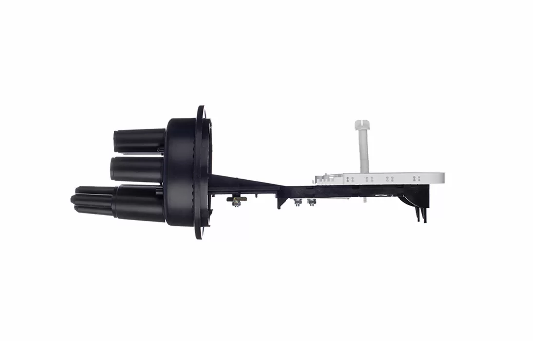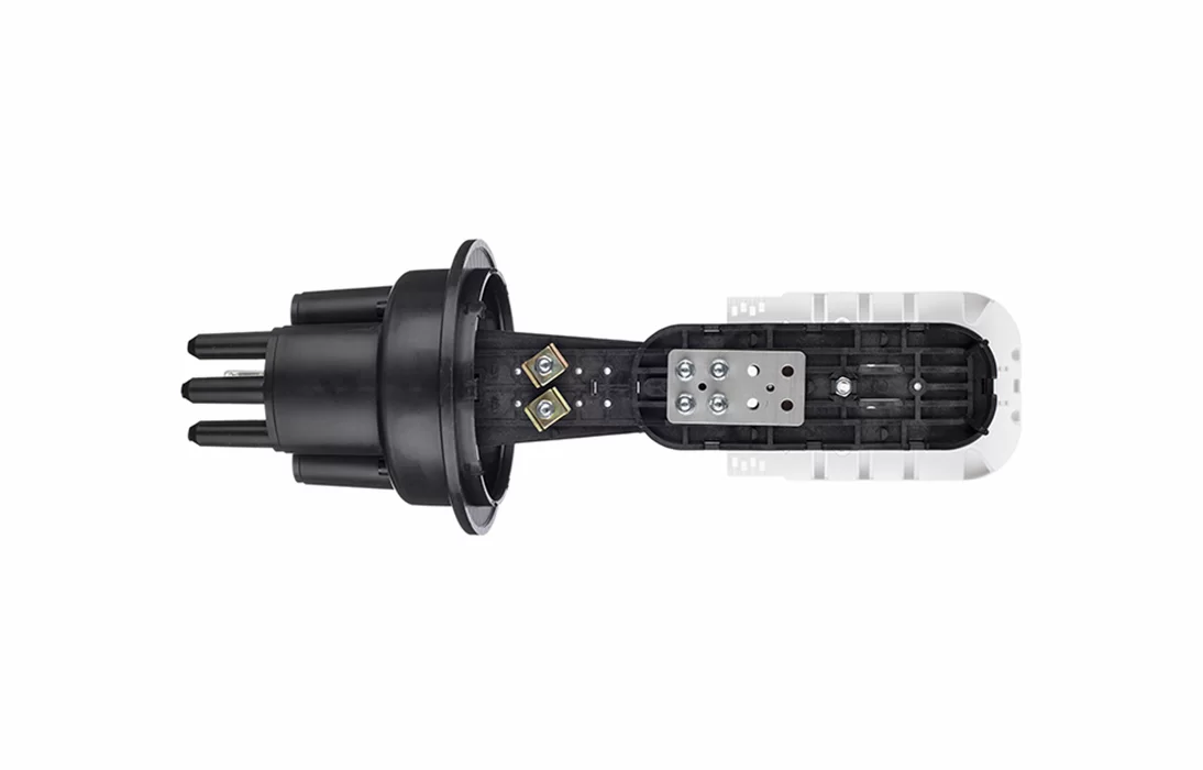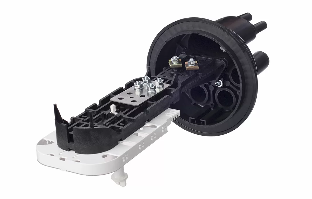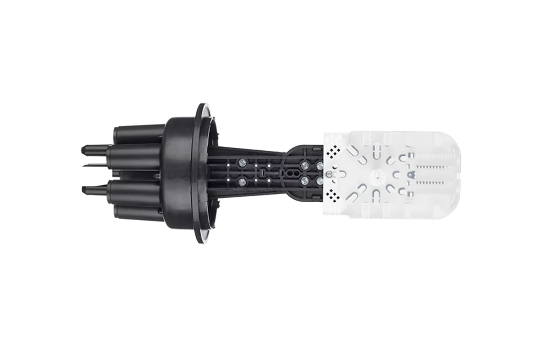 Предназначена для монтажа любого оптического кабеля (кроме подводных). Достигается это за счет использования специальных кабельных вводов, каждый из которых в свою очередь охватывает определенную группу кабелей. В муфте предусмотрен овальный ввод для транзитной петли оптических модулей без разрезания. Выкладка петли модулей осуществляется на лотке с противоположной стороны от кассет.