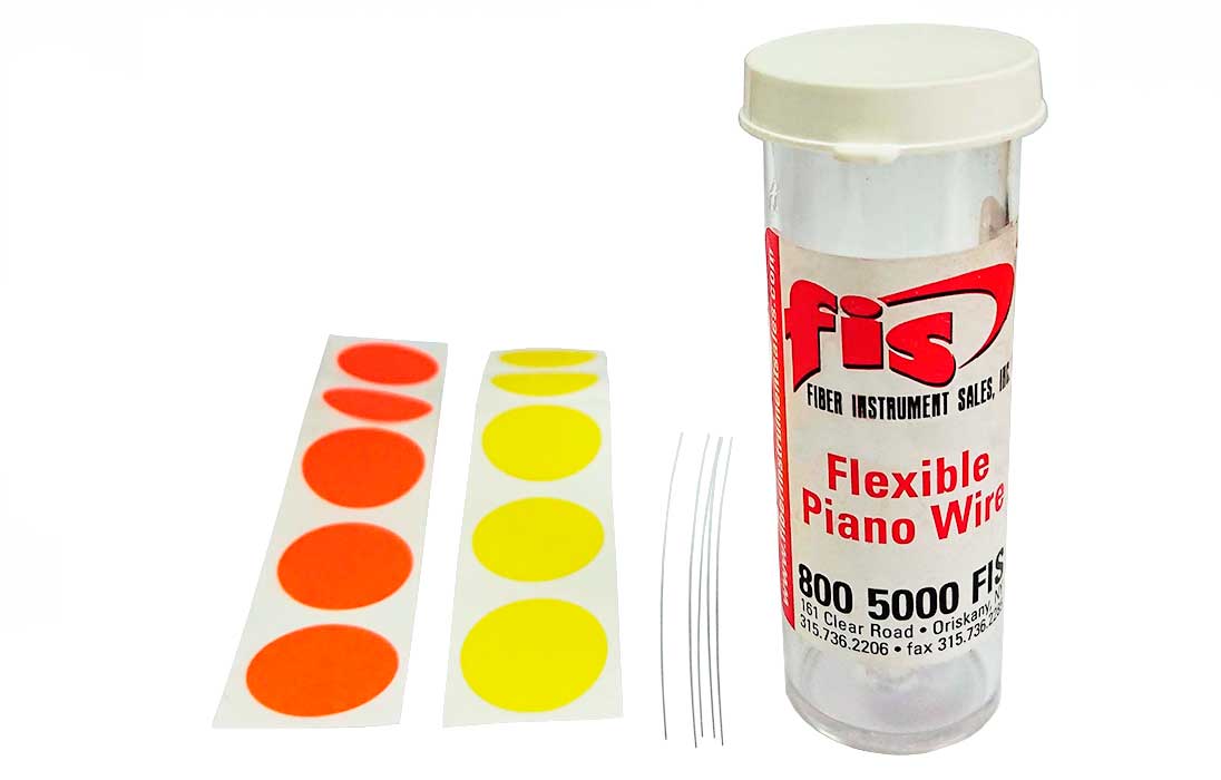 Проволока струнная стальная, предназначена для удаления из феррула коннектора керамической стружки, при непроходимости волокна внутри феррулы. Клейкие цветные вкладки позволяют удобно держать проволоку. Проволочки FIS F1-8265 имеют диаметр 0.1 мкм и оптимально подходят для отверстия коннектора 0.125 мкм, в котором возможны поломки и застревания оптического волокна. Проволочки позволяют извлечь обломанное волокно из оптического коннектора.