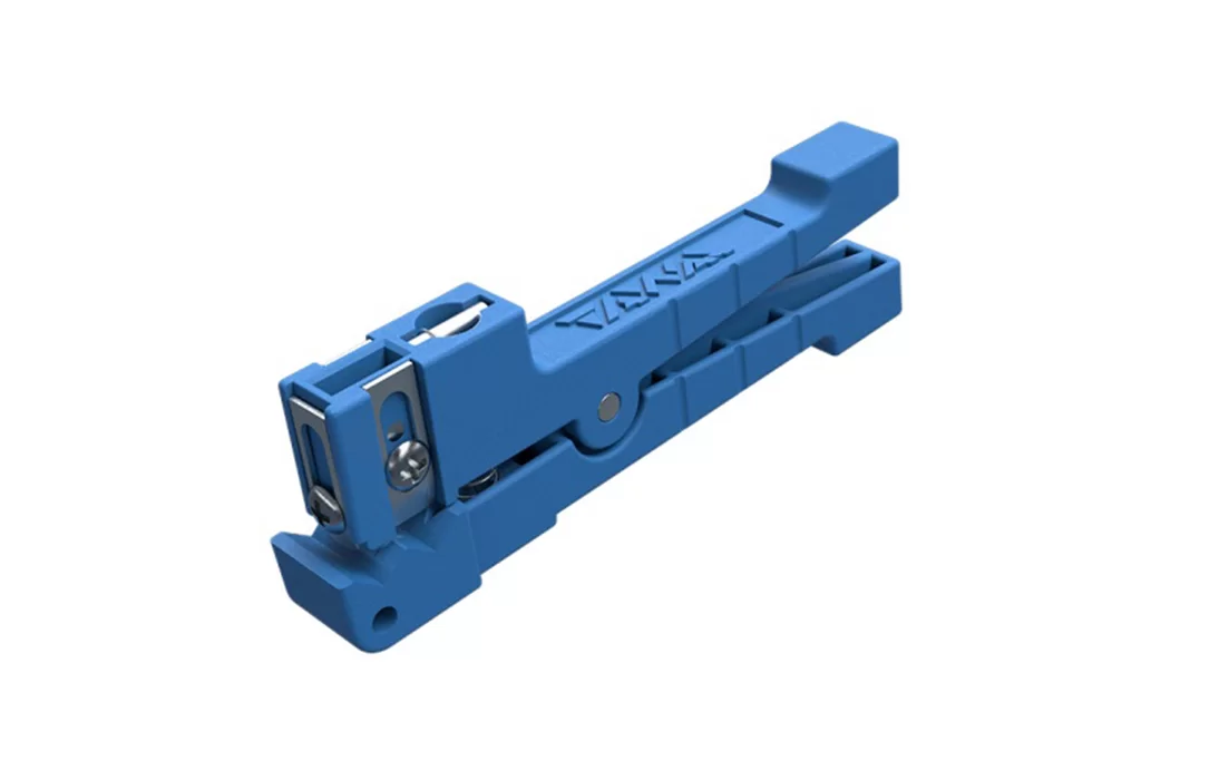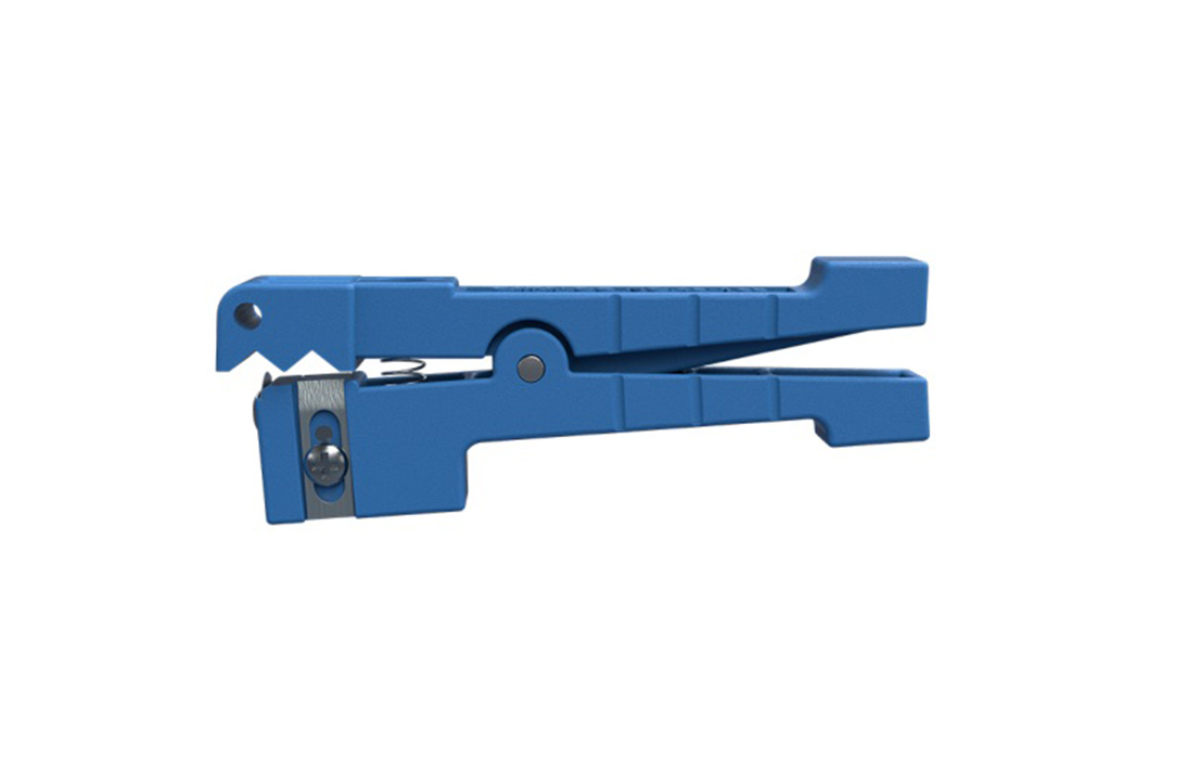 Стриппер-прищепка 45-163 предназначен для удаления внешних модулей диаметром от 3,2 до 5,6мм. Инструмент имеет два лезвия для продольной и поперечной резки. Имеется возможность регулировки положения лезвий (вручную ослабляя-затягивая удерживающий винт) для выставления нужной глубины прорезания. Удобен для разделки модулей оптических кабелей, а так же коаксиальных кабелей.