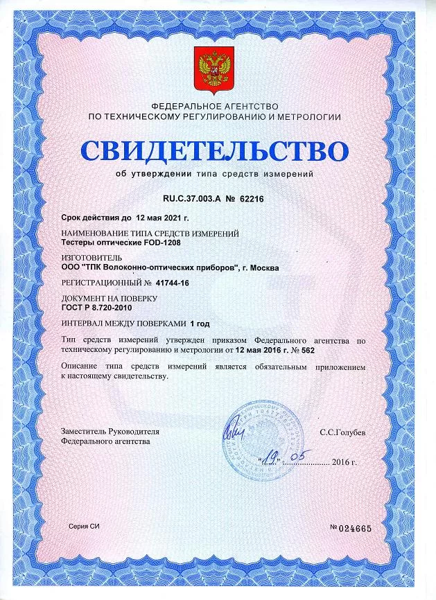 Предназначен для измерения оптической мощности в волоконно-оптическом тракте на калиброванных длинах волн 1310, 1490, 1550, 1625 и 1650 нм, измерения затухания в одномодовых оптических волокнах на длинах волн 1310 нм и 1550 нм, а так же для прозвонки соединительных кабелей.