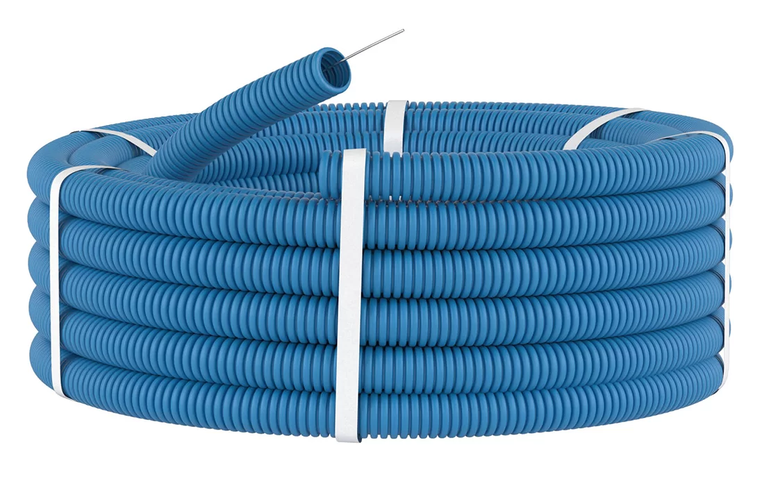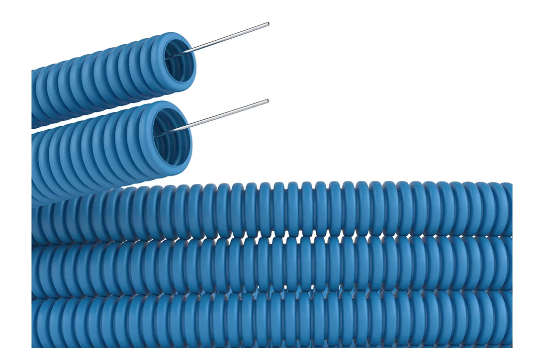 Благодаря гладкой внутренней поверхности можно протянуть кабель. Гофрированная часть с рёбрами жёсткости позволяет выдерживать достаточно высокие нагрузки и прокладывать трубу глубоко под грунтом.