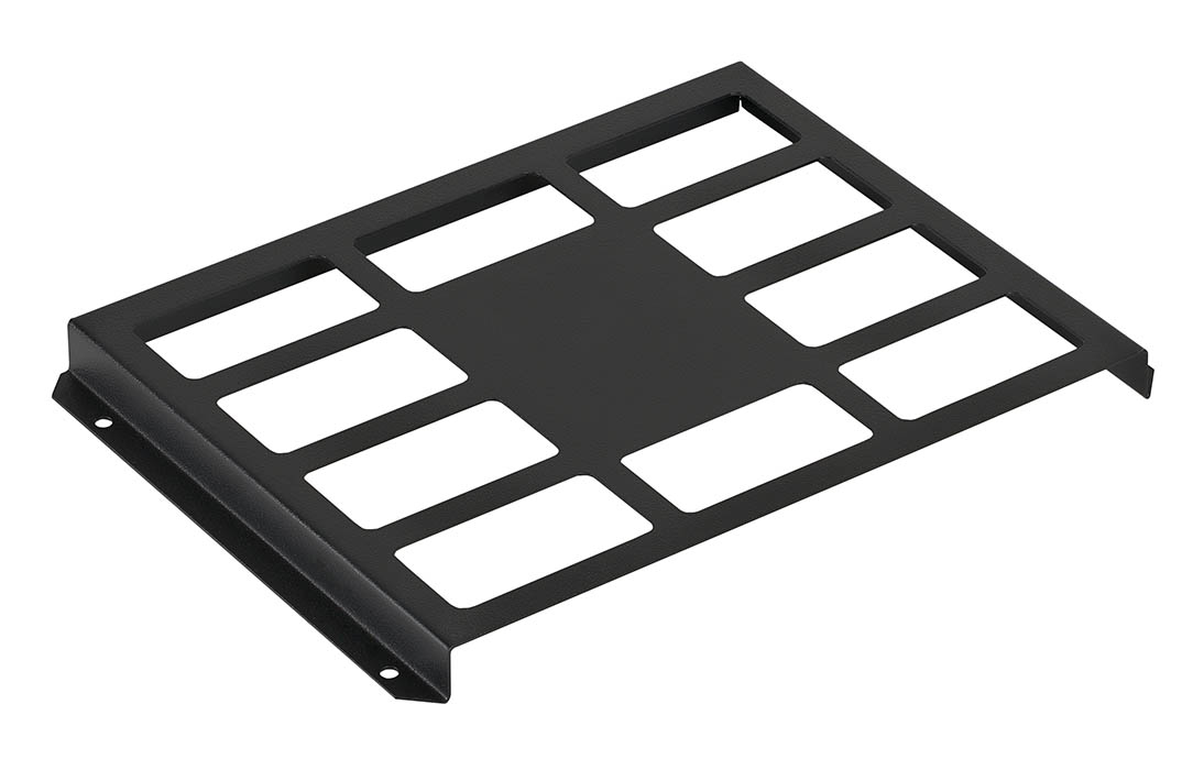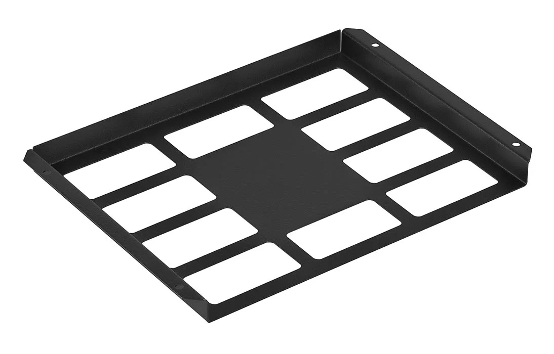 Крепится внутри шкафов и открытых стоек на двусторонний скотч, либо на саморезы (не входят в комплект).