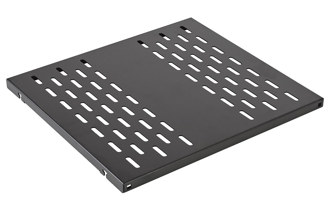 Полка стационарная предназначена для размещения нестандартного оборудования. Имеет четыре точки фиксации к вертикальным направляющим шкафов телекоммуникационных, климатических и открытых стоек. Для охлаждения оборудования полка имеет перфорацию.