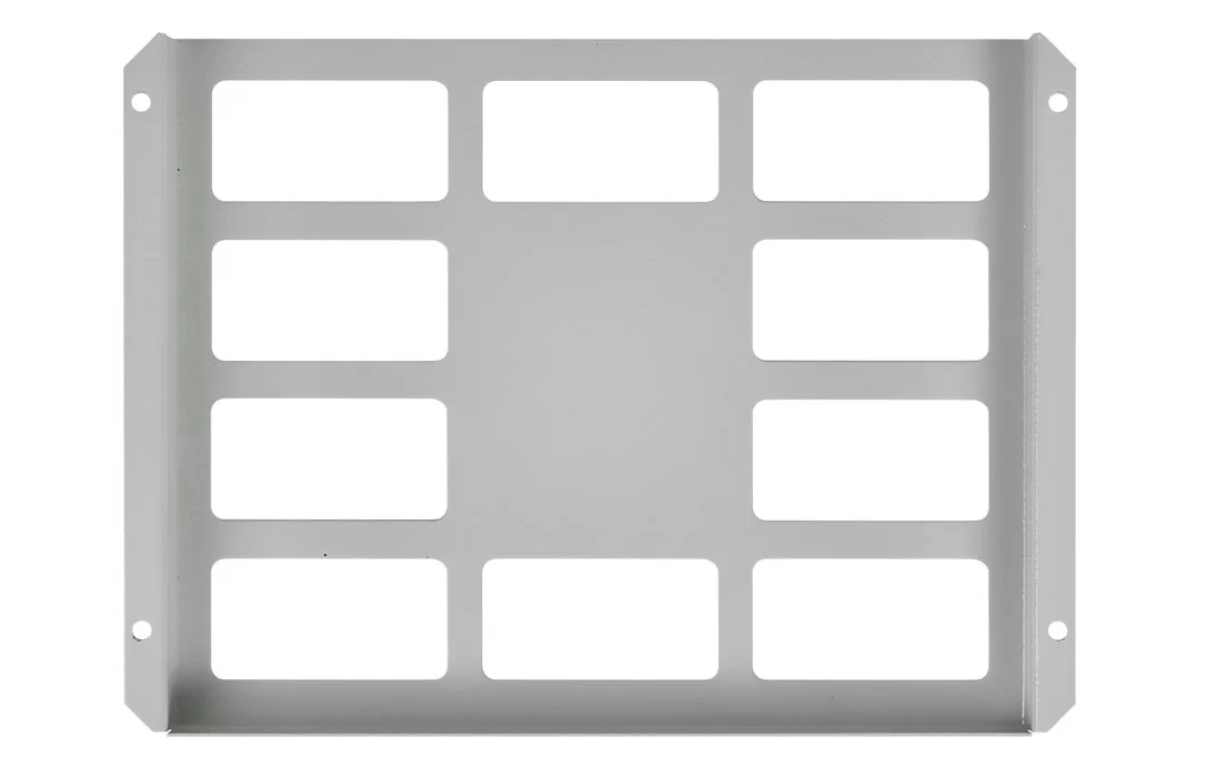Крепится внутри шкафов и открытых стоек на двусторонний скотч, либо на саморезы (не входят в комплект).