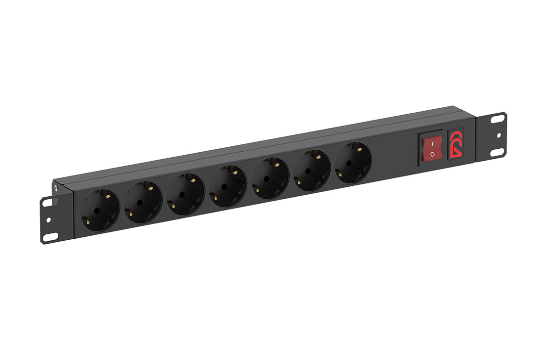 На лицевой части блока установлен выключатель. Цвет – RAL 9005 (черный), порошково-полимерное покрытие. Выполнен в системе несущих конструкций 482,6 мм по ГОСТ 28601.2 (19-дюймовые конструктивы по МЭК 297). Горизонтальные PDU соответствуют стандарту 19"
