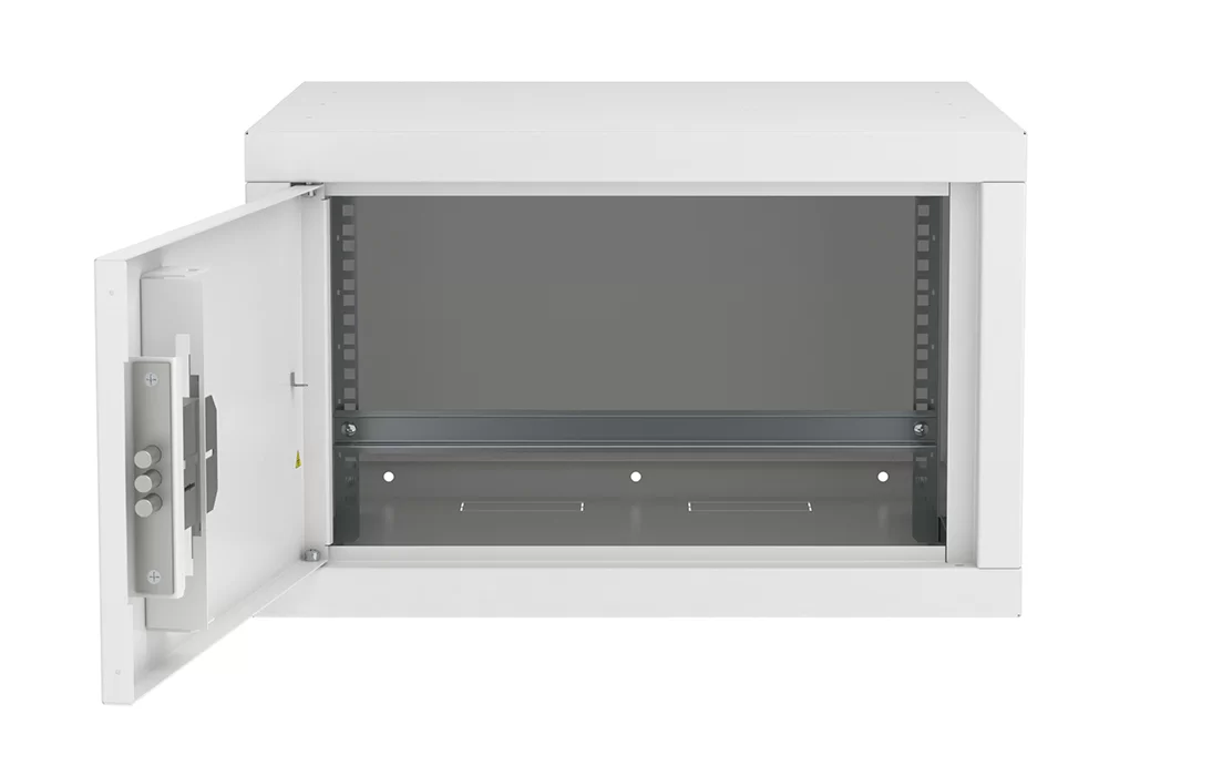 Дверь шкафа усилена двумя швеллерами и запирается надежным ригельным замком с трехточечной фиксацией. Угол открывания двери – 120˚, обеспечивает хороший доступ для монтажа и коммутации оборудования.