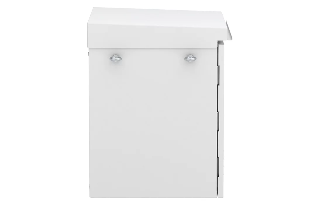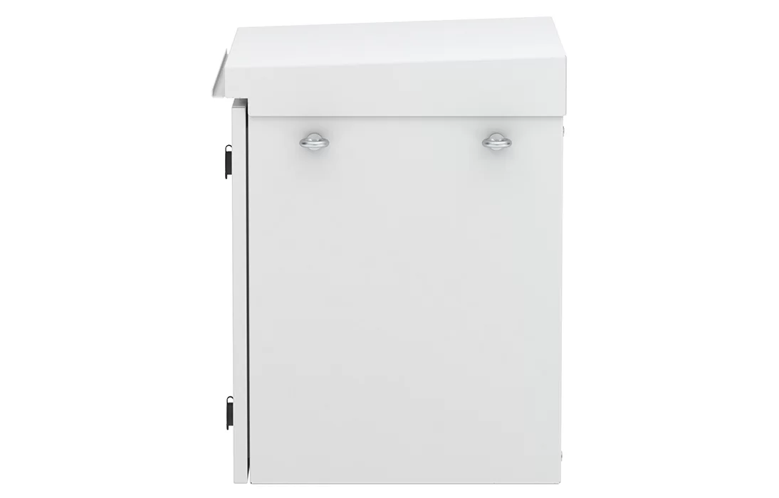 Отличительной особенностью от шкафов климатических телекоммуникационных навесных серии ШКТ-НВ является наличие крыши с козырьком.