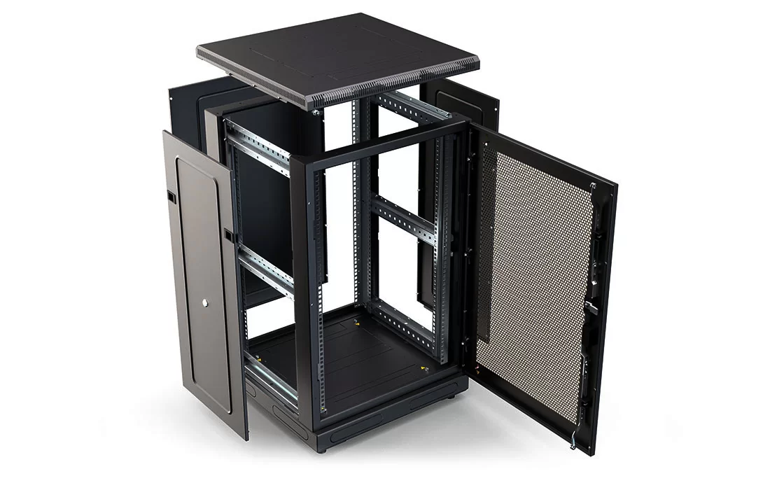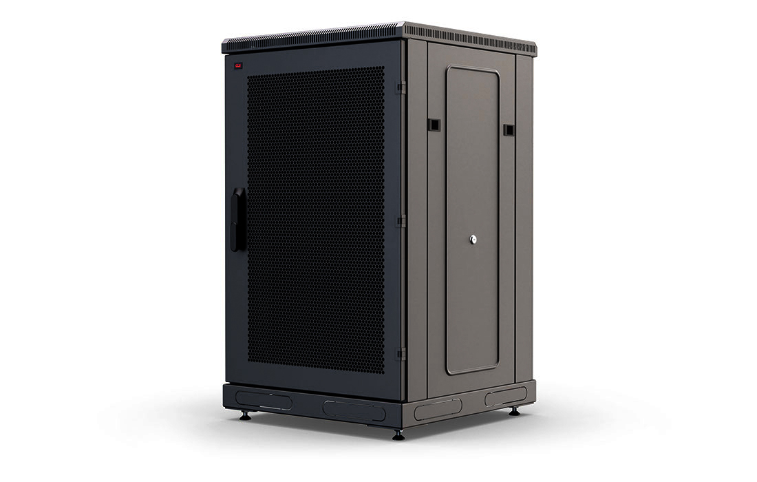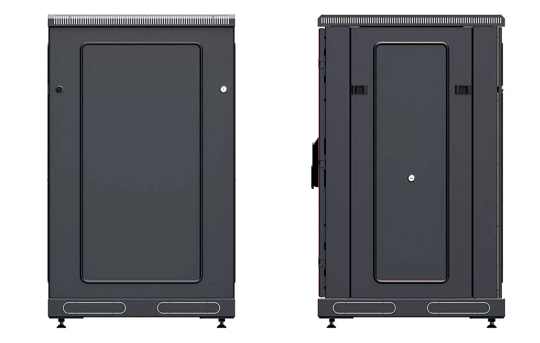 За счет элементов крепления каркас шкафа имеет повышенную жесткость. Распределенная вертикальная нагрузка до 800 кг. Стандартно шкаф комплектуется: передней дверью, боковыми и задней стенками с замками.