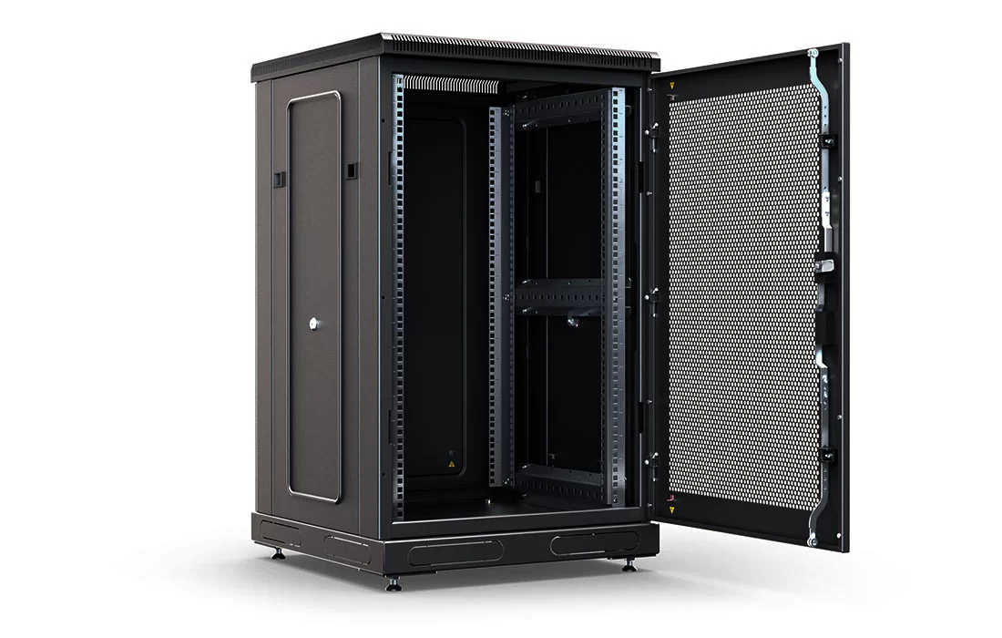 —Шкаф телекоммуникационный напольный 19",18U(600x1000), ШТ-НП-М-18U-600-1000-П-Ч, передняя дверь перфорация, черный ССД