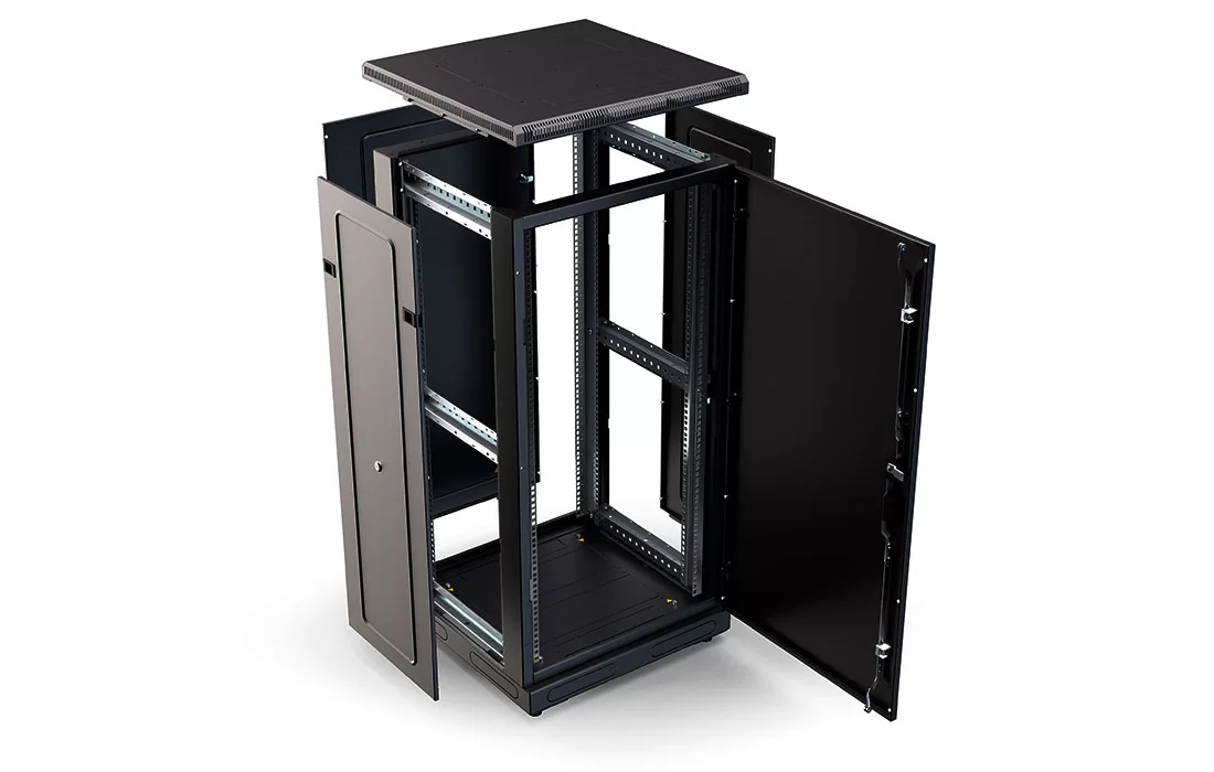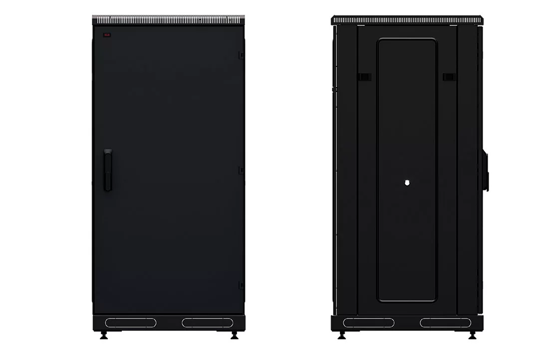 За счет элементов крепления каркас шкафа имеет повышенную жесткость. Распределенная вертикальная нагрузка до 800 кг. Стандартно шкаф комплектуется: передней дверью, боковыми и задней стенками с замками.