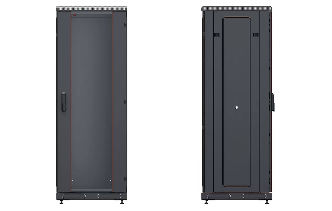 За счет элементов крепления каркас шкафа имеет повышенную жесткость. Распределенная вертикальная нагрузка до 800 кг. Стандартно шкаф комплектуется: передней дверью, боковыми и задней стенками с замками.