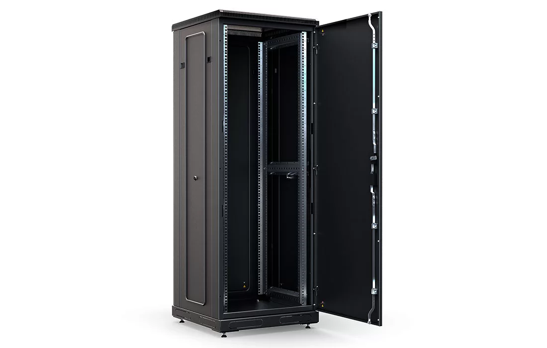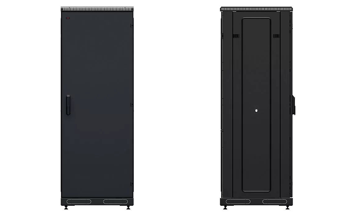 За счет элементов крепления каркас шкафа имеет повышенную жесткость. Распределенная вертикальная нагрузка до 800 кг. Стандартно шкаф комплектуется: передней дверью, боковыми и задней стенками с замками.