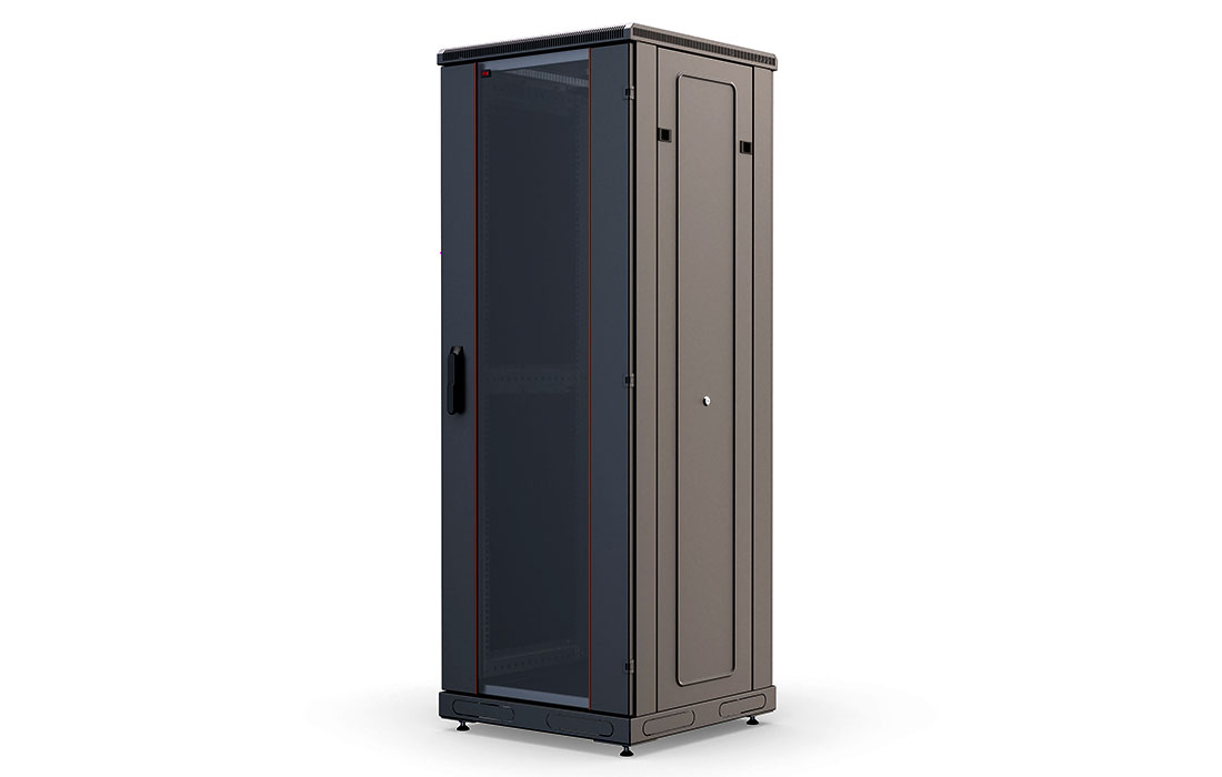 За счет элементов крепления каркас шкафа имеет повышенную жесткость. Распределенная вертикальная нагрузка до 800 кг. Стандартно шкаф комплектуется: передней дверью, боковыми и задней стенками с замками.