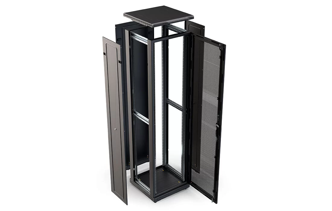 За счет элементов крепления каркас шкафа имеет повышенную жесткость. Распределенная вертикальная нагрузка до 800 кг. Стандартно шкаф комплектуется: передней дверью, боковыми и задней стенками с замками.