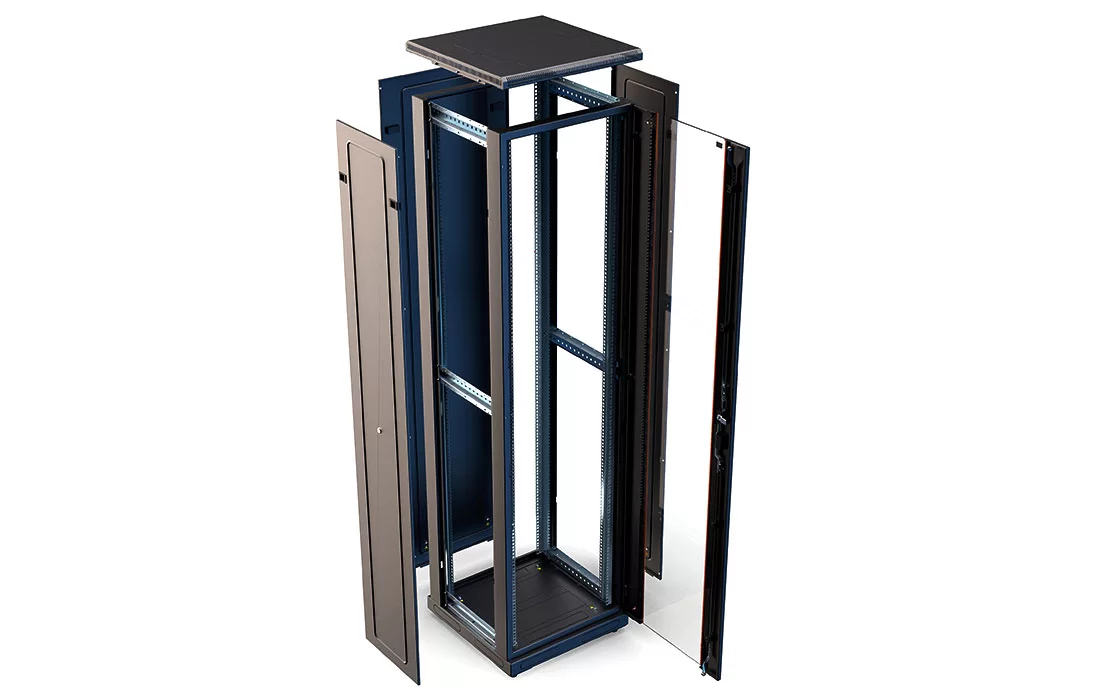 За счет элементов крепления каркас шкафа имеет повышенную жесткость. Распределенная вертикальная нагрузка до 800 кг. Стандартно шкаф комплектуется: передней дверью, боковыми и задней стенками с замками.