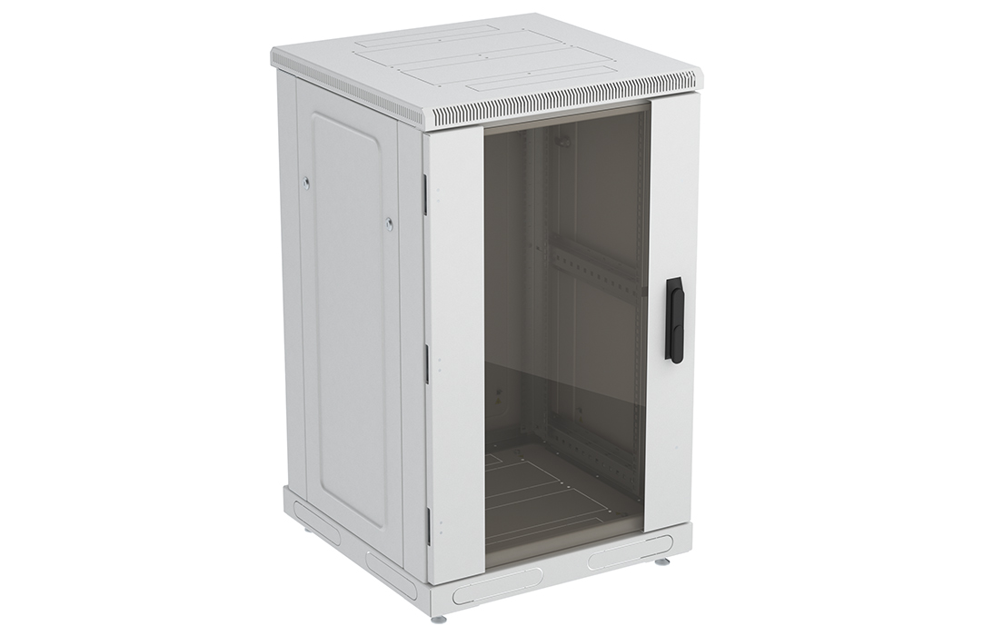 За счет элементов крепления каркас шкафа имеет повышенную жесткость. Распределенная вертикальная нагрузка до 600 кг. Стандартно шкаф комплектуется: передней дверью, боковыми и задней стенками с замками.