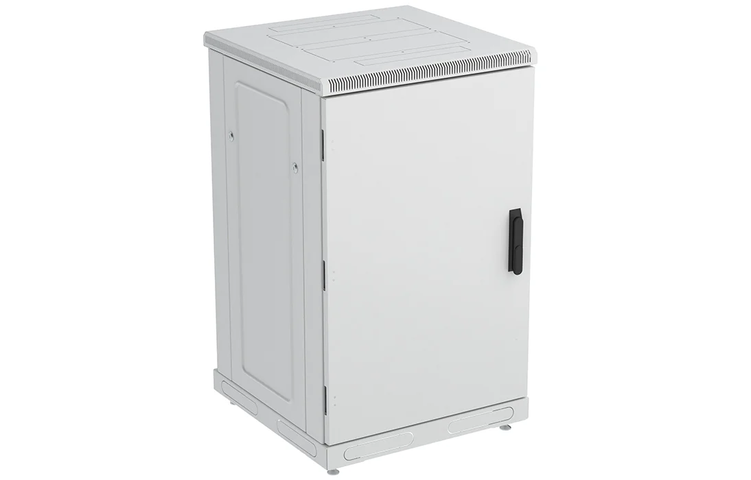 За счет элементов крепления каркас шкафа имеет повышенную жесткость. Распределенная вертикальная нагрузка до 600 кг. Стандартно шкаф комплектуется: передней дверью, боковыми и задней стенками с замками.