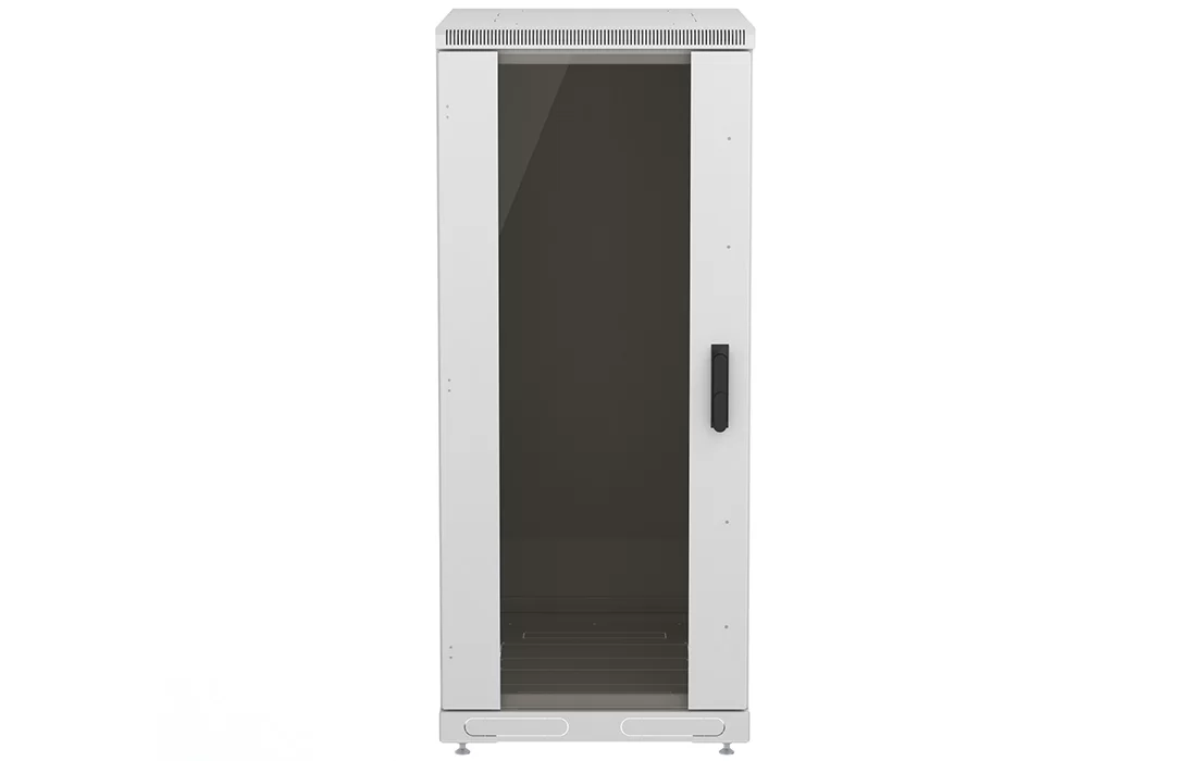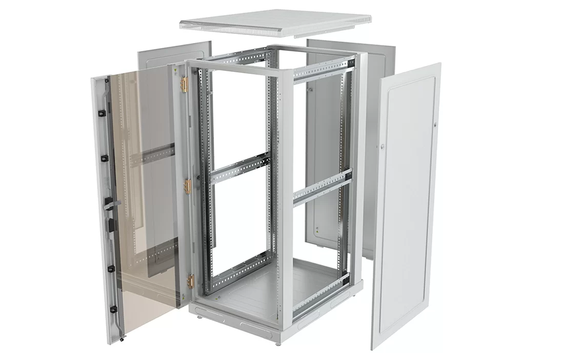 За счет элементов крепления каркас шкафа имеет повышенную жесткость. Распределенная вертикальная нагрузка до 600 кг. Стандартно шкаф комплектуется: передней дверью, боковыми и задней стенками с замками.