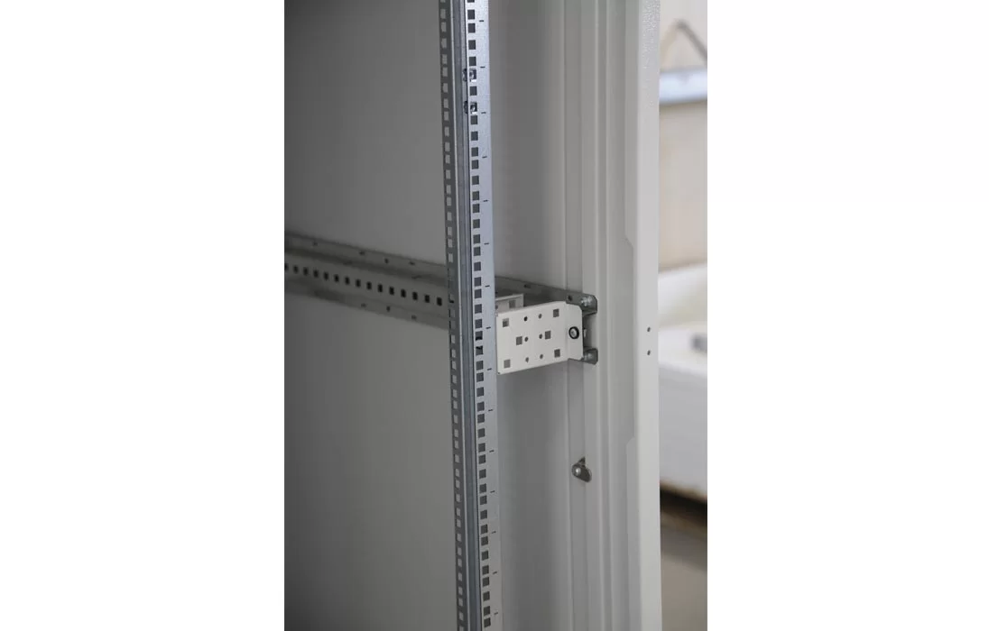 Вертикальные направляющие регулируются по глубине. Система заземления шкафа входит в стандартную комплектацию.