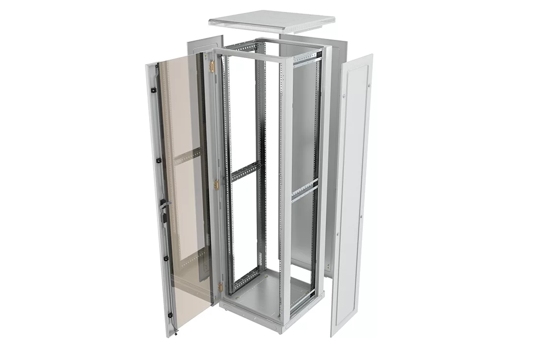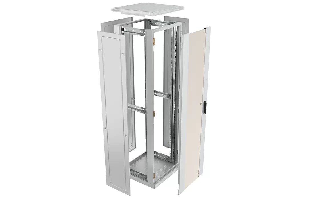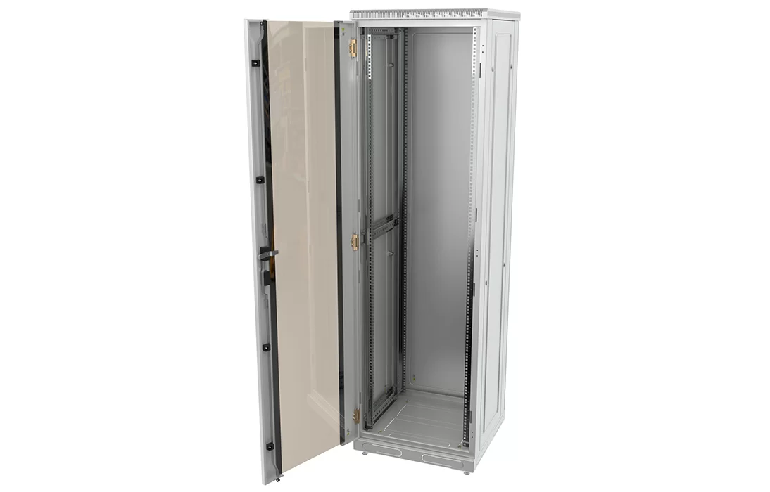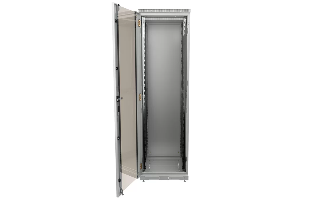 За счет элементов крепления каркас шкафа имеет повышенную жесткость. Распределенная вертикальная нагрузка до 600 кг. Стандартно шкаф комплектуется: передней дверью, боковыми и задней стенками с замками.
