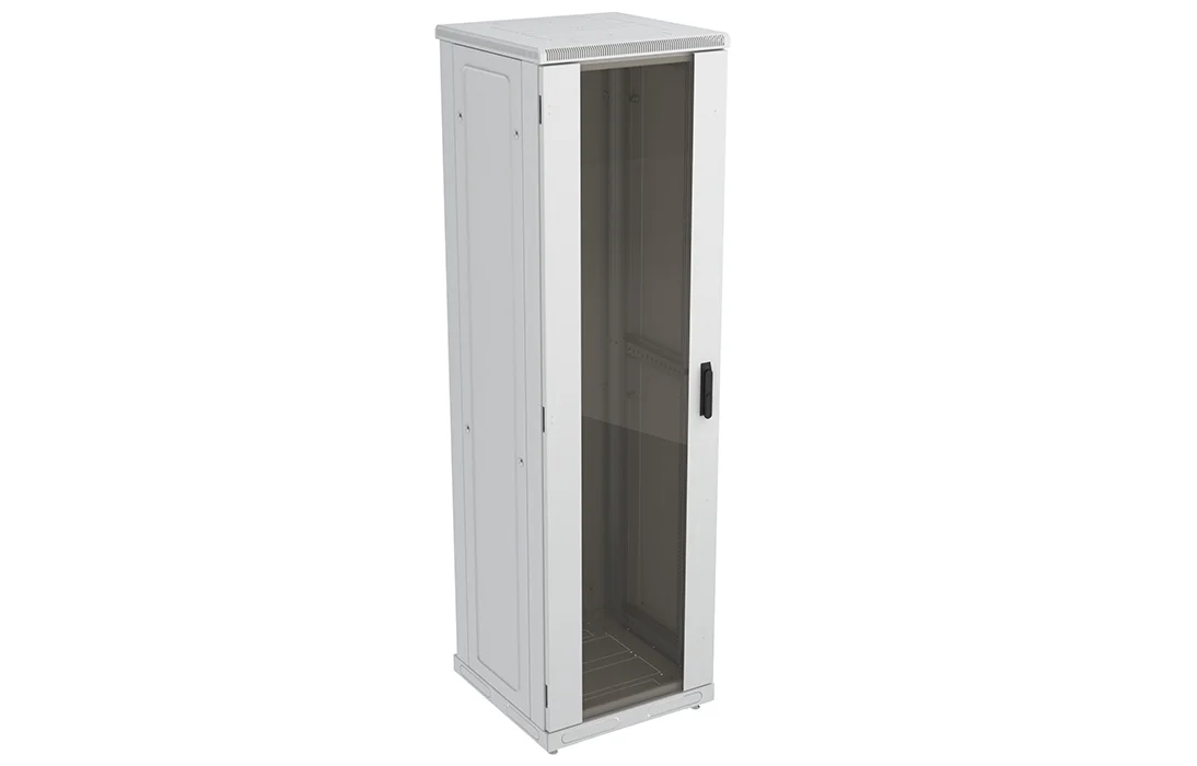 За счет элементов крепления каркас шкафа имеет повышенную жесткость. Распределенная вертикальная нагрузка до 600 кг. Стандартно шкаф комплектуется: передней дверью, боковыми и задней стенками с замками.