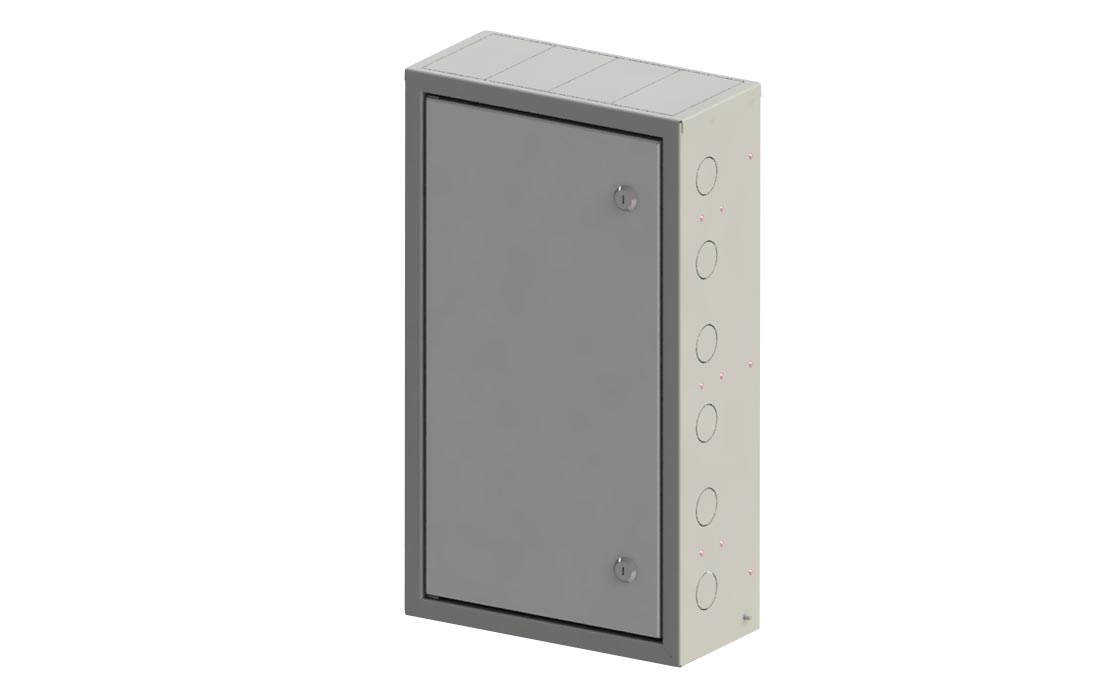 На дне и крыше шкафа имеется по 4 выламываемых кабельных вводов размером 123х68 мм.