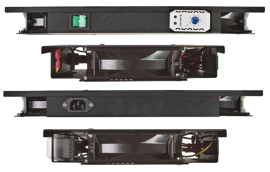 В вентиляторных модулях установлен переключатель с тремя режимами: включен постоянно, выключен, включение от термодатчика при заданной температуре в диапазоне от 0 до 60 °С.