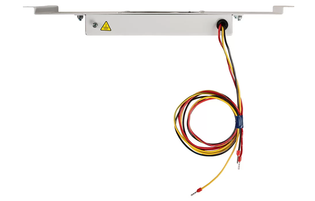 Устанавливается к боковой стене шкафа с помощью гаек и шайб. Крепления на шпильки уже предусмотрены внутри шкафа. По умолчанию на этом месте установлен защитный экран, модуль устанавливается на его место.