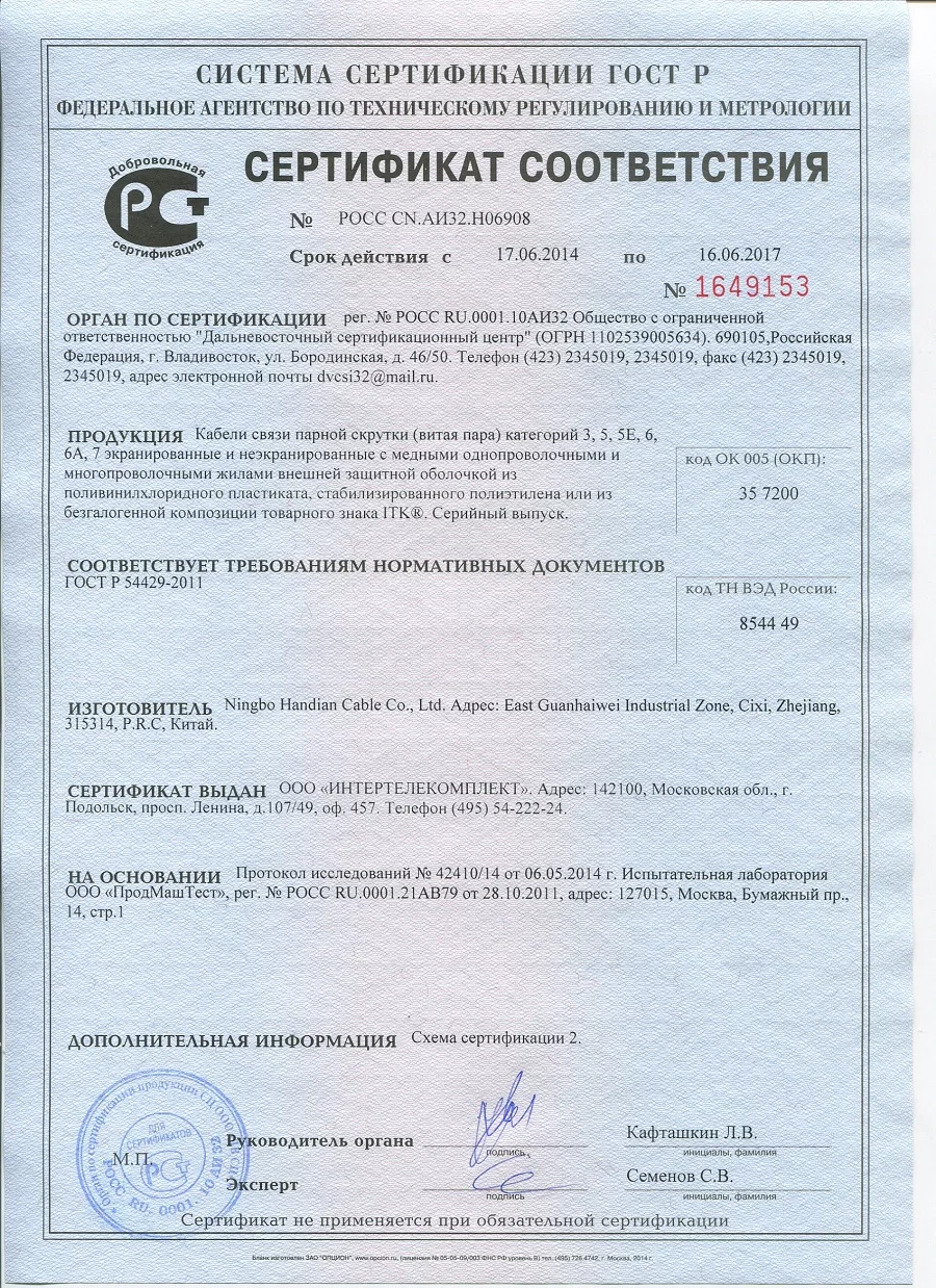 Отличается высоким качеством и надежностью, выполнен из электротехнической меди Т1 (99,96%) и обладает более низкой ценой, чем стандартный кабель категории 5Е для СКС.
