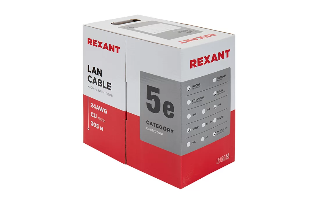 —01-0049 Кабель витая пара REXANT UTP 4PR 24AWG, CAT5e, нг(А)-HF, LSZH (бухта 305 м)