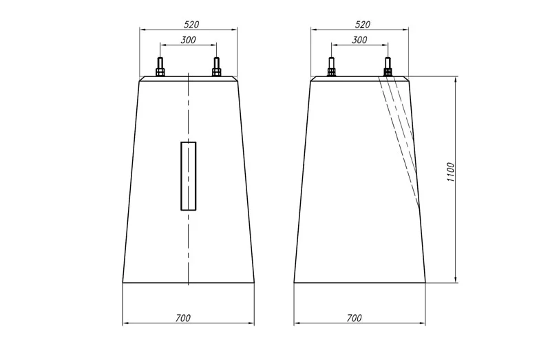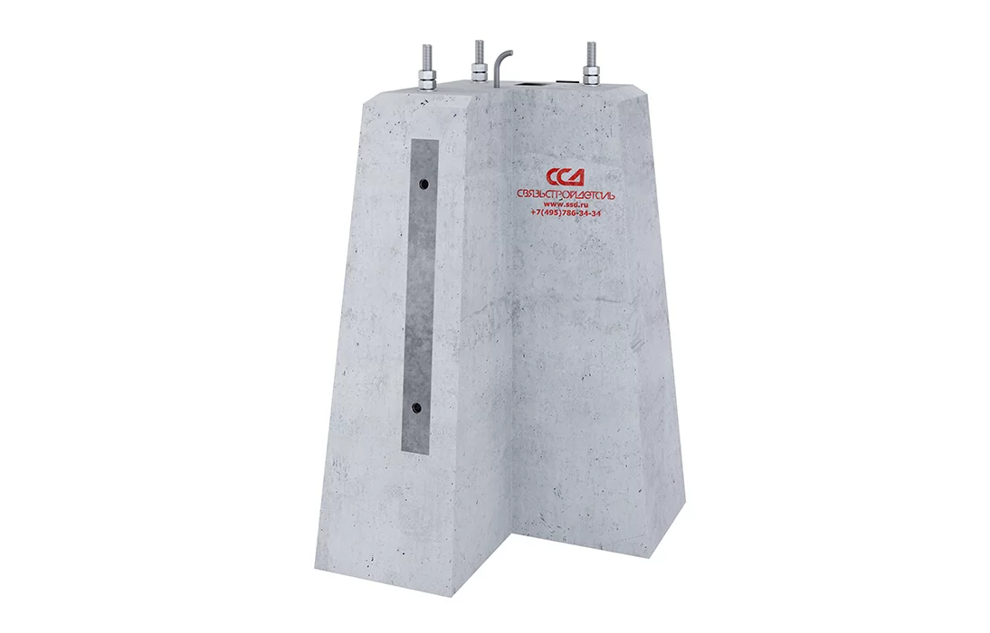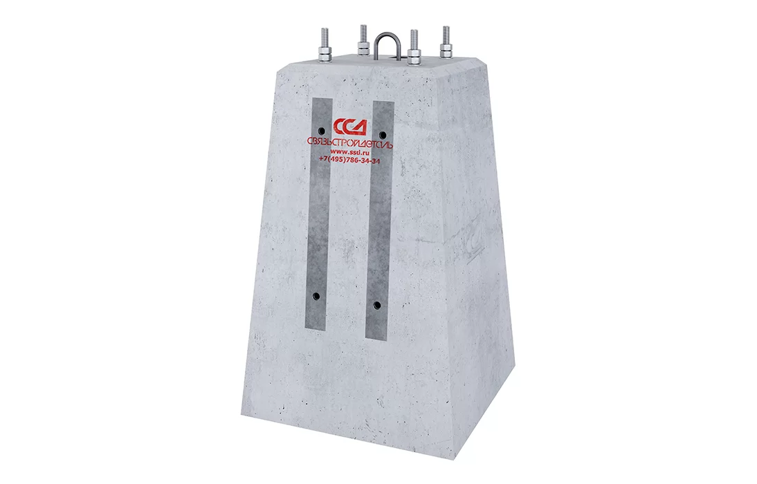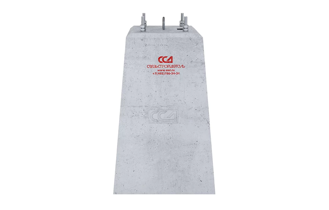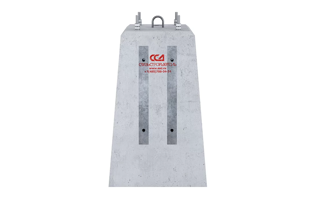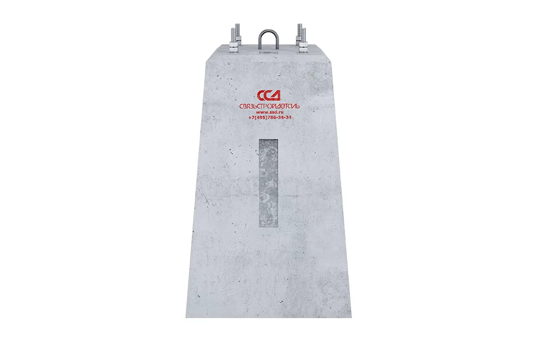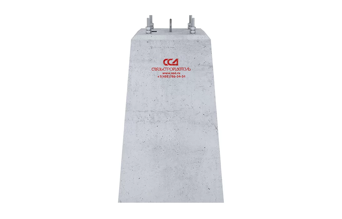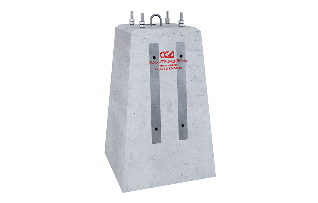 Представляет собой железобетонный блок с закладным устройством (квадратной трубой) и закладными элементами для крепления наклонной лестницы. Болты на которые накручена гайка, выступают над поверхностью блока на 100 мм.