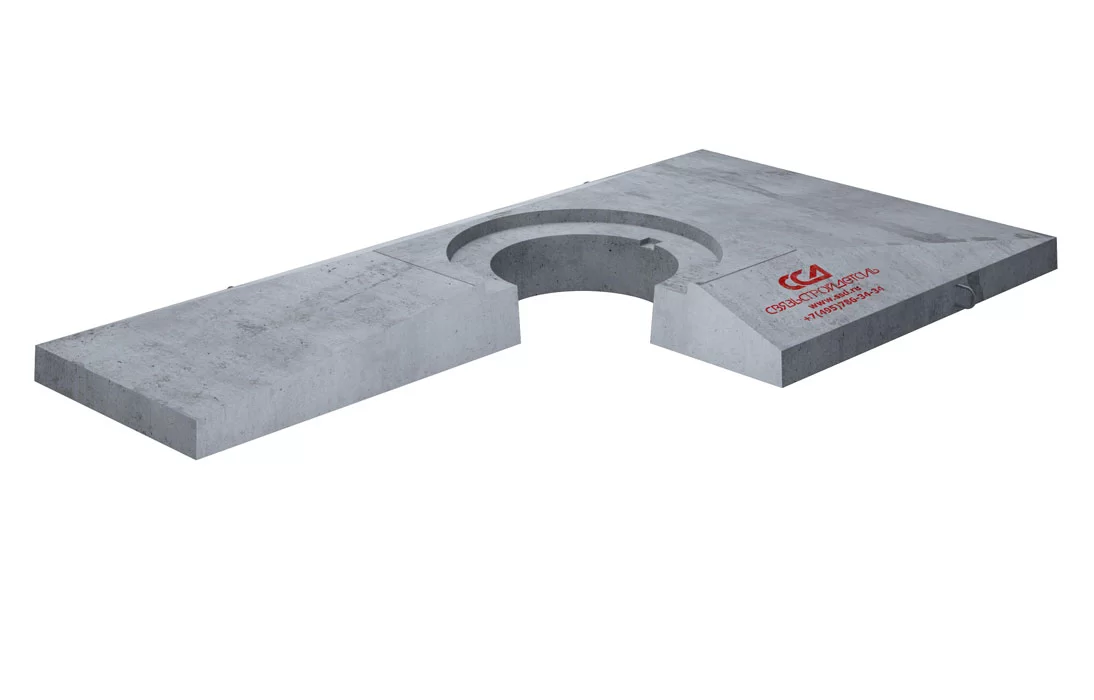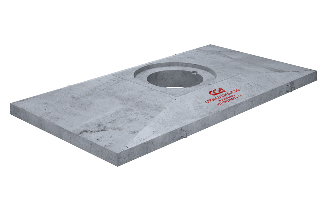Плита имеет прямоугольную форму усеченной пирамиды, в центре которой расположено круглое отверстие диаметром 600 мм для формирования горловины с люком. Плита рассчитана на нормативную нагрузку «НК-80», то есть может размещаться под проезжей частью.