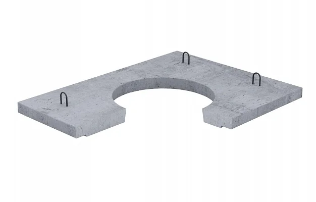 Плита имеет прямоугольную форму, в центре которой расположено круглое отверстие диаметром 600 мм, для формирования горловины с люком. На верхней поверхности плиты, с четырех сторон располагаются петли для строповки.