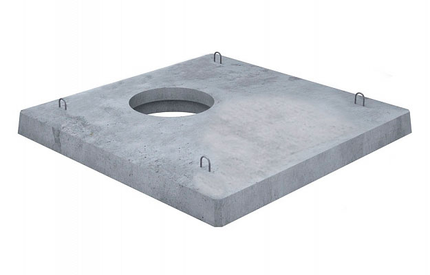 Плита имеет квадратную форму со смещенным относительно центра круглым отверстием для установки люка. На верхней поверхности плиты расположены четыре строповочных петли. Отверстие снизу плиты имеет диаметр 760 мм, которое конусообразно сужается до 600 мм в верхней части плиты. Это создает возможность ввода горловины пластикового колодца внутрь отверстия плиты, с последующим размещением пластиковой крышки колодца или чехла на горловине колодца для дополнительной защиты от воды и грязи. Чтобы исключить давление плиты на горловину колодца при проседании грунта после строительства, ее следует вводить не более чем на треть высоты отверстия плиты.