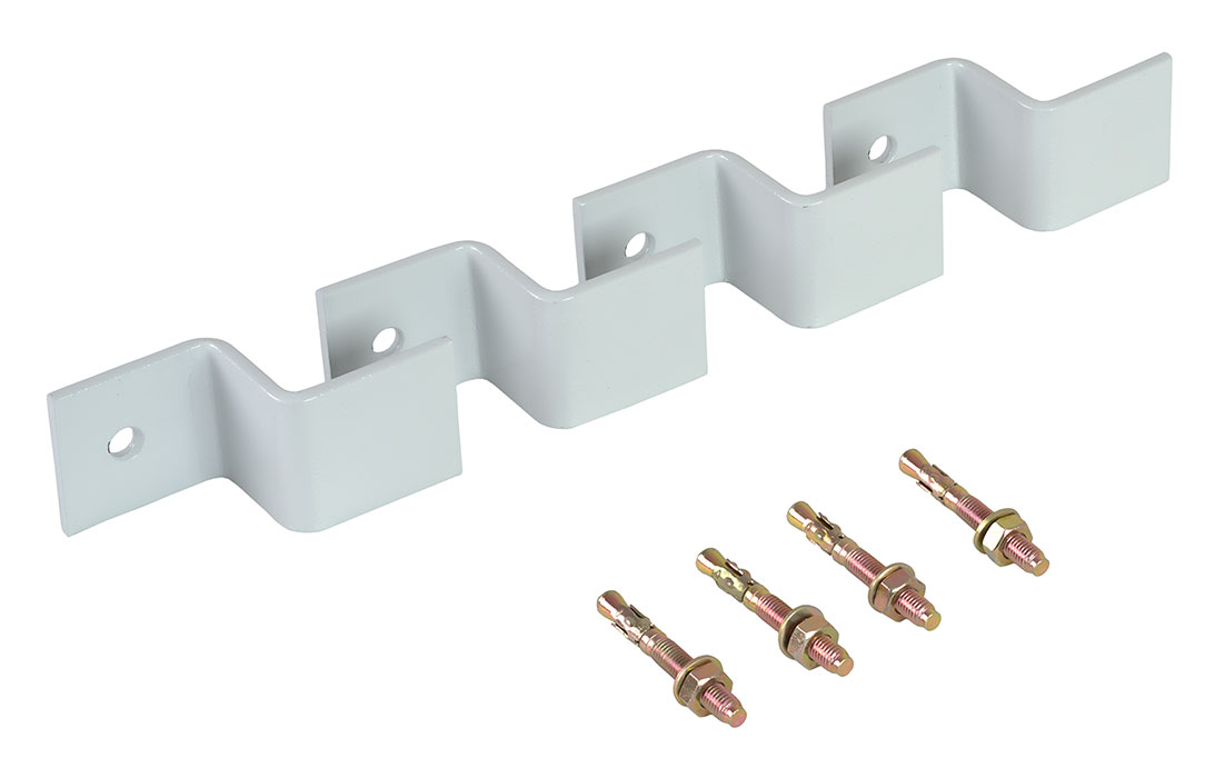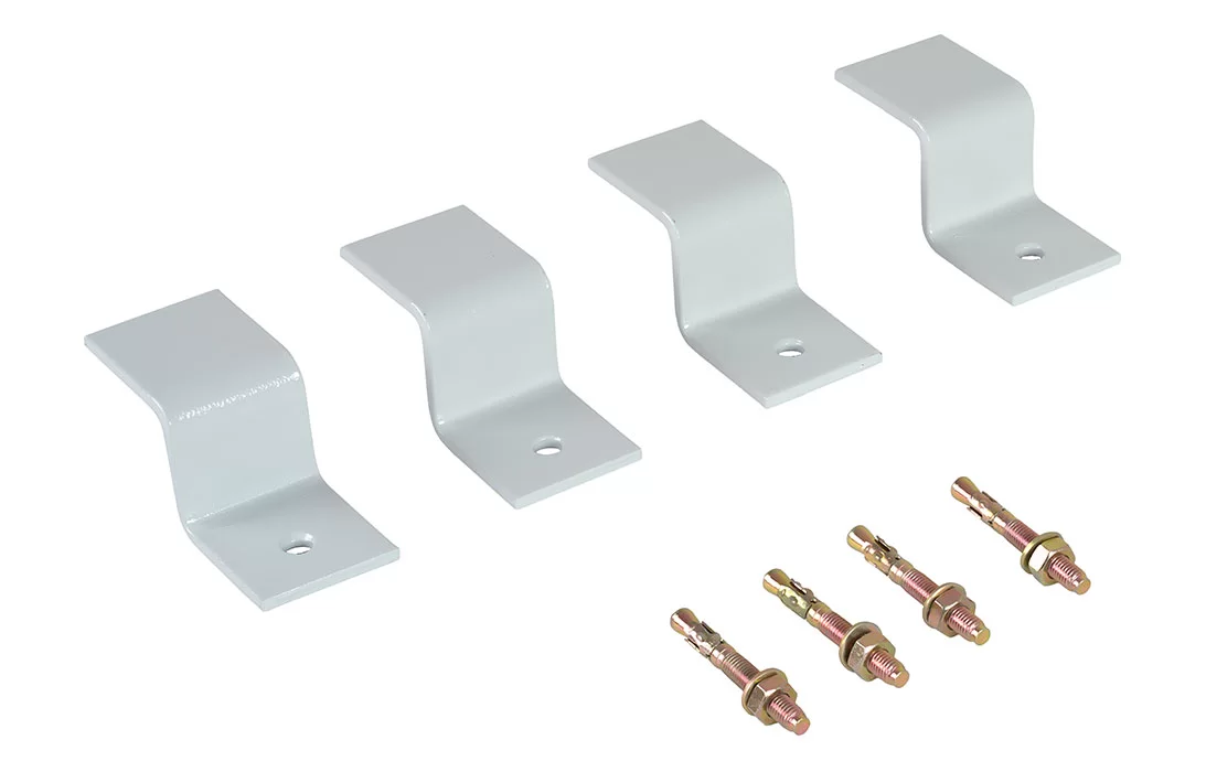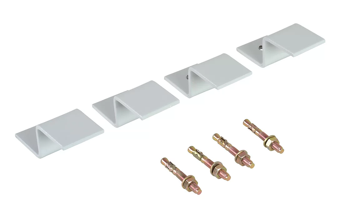 Комплект состоит из 4 металлических скоб с отверстиями, специальным образом изогнутых по форме дна камеры, и 4 клиновых анкеров для фиксации КОТ-1 к основанию. Скобы покрыты порошковой краской.