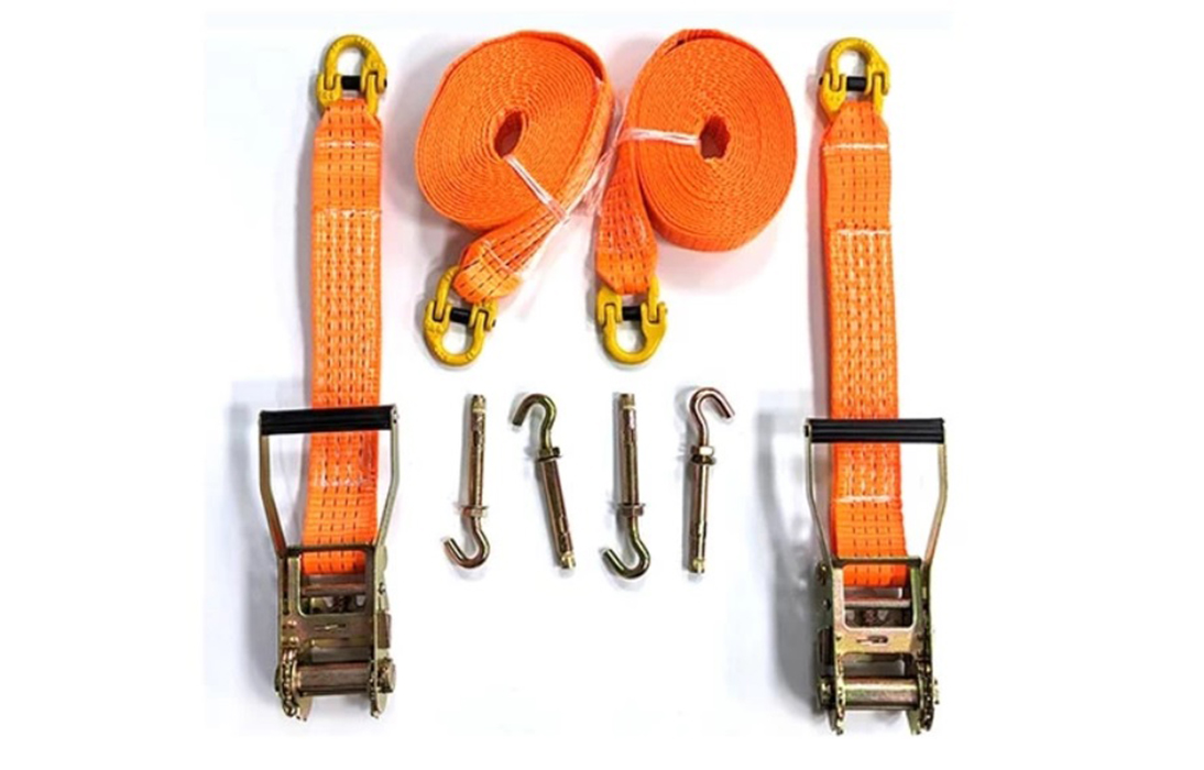 Представляет собой ремень из полиэстера с храповым механизмом. На концах ремня крюки, которые зацепляются за анкерные болты с крюком или за строповочные петли анкерной плиты. Храповым механизмом ремни натягиваются, надежно фиксируют колодец к плите.