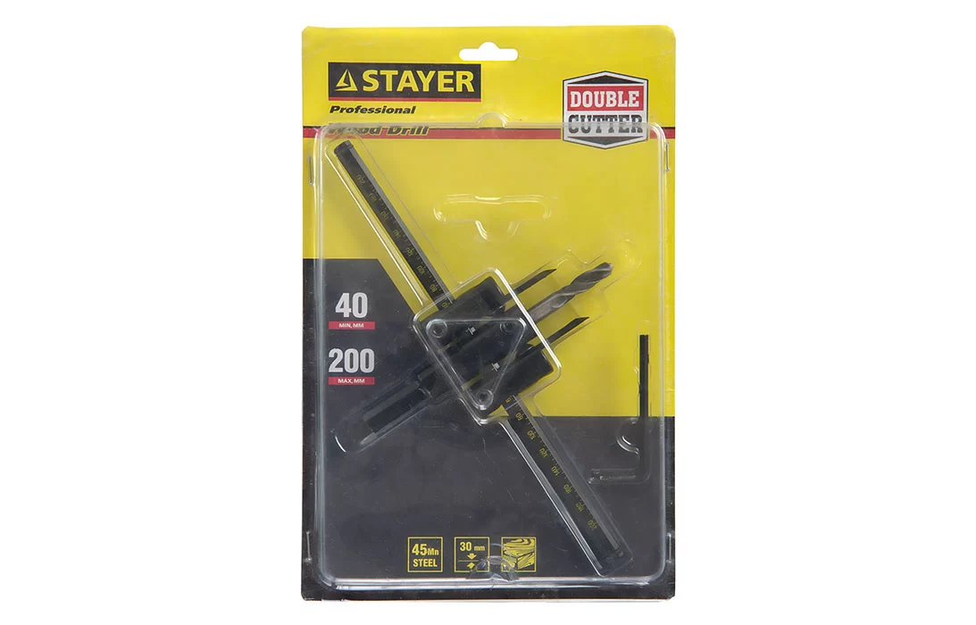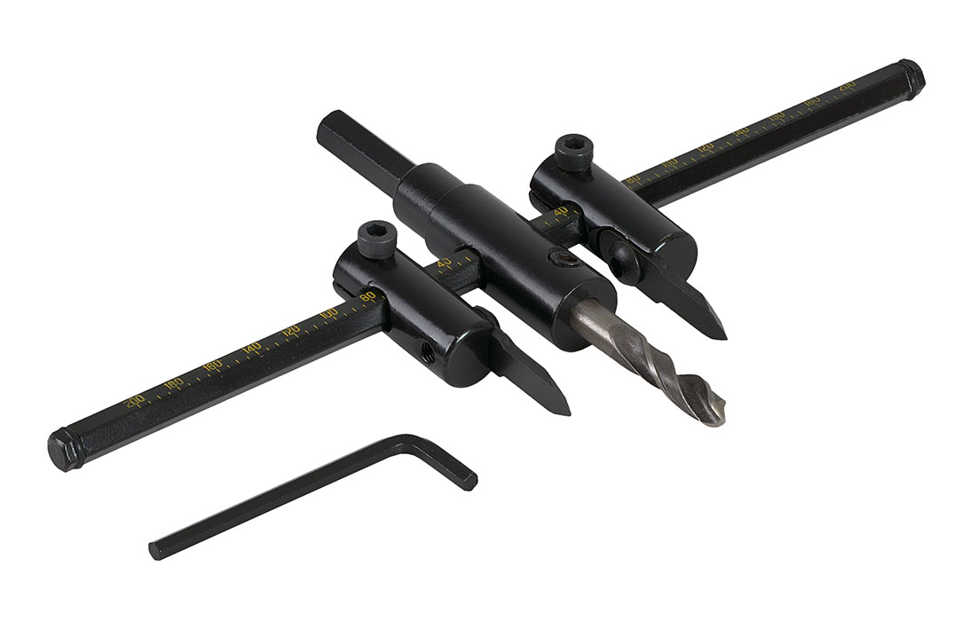 Сверло имеет возможность регулировки диаметра сверления с помощью ключа путем перемещения резцов. Твердосплавные режущие кромки резцов обеспечивают ровный рез.