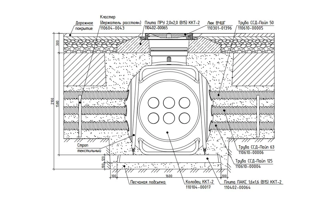 Предназначен для строительства электрических и телекоммуникационных кабельных сетей в качестве смотрового устройства кабельной канализации, с возможностью обеспечения вывода горловины на поверхность, а также в качестве подземных контейнеров с целью размещения пассивного оборудования.