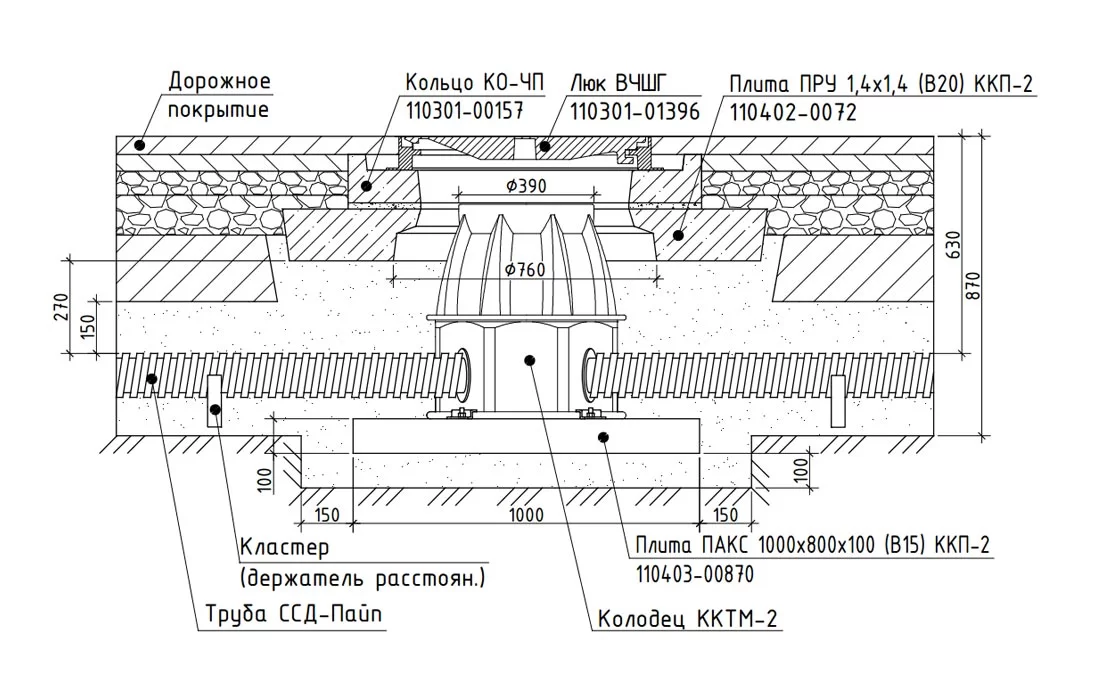Предназначен для использования в качестве смотрового устройства с возможностью вывода люка на поверхность, а также в качестве герметичного подземного контейнера, предназначенного для распределения кабеля и размещения малогабаритного оборудования.