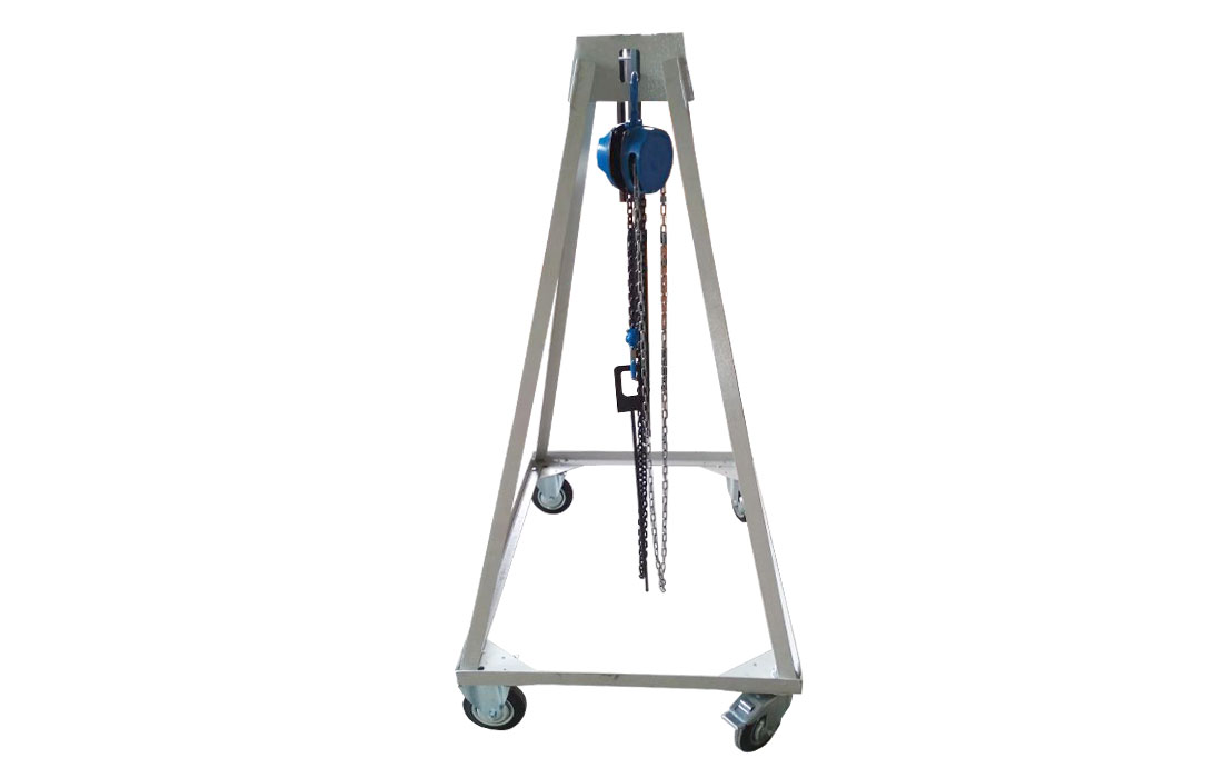 Для удобства транспортировки и работы устройство имеет четыре колеса диаметром 160 мм. Два колеса являются неповоротными. Другие два поворотные и имеют фиксаторы для предотвращения движения. Расстояние от поверхности земли до рамы устройства 190 мм, что позволяет ему легко маневрировать над открытой крышкой люка и другими препятствиями. Металлическая рама покрыта порошковой краской. В качества подъемного механизма применяется ручная цепная таль. Длина цепи 3 метра.