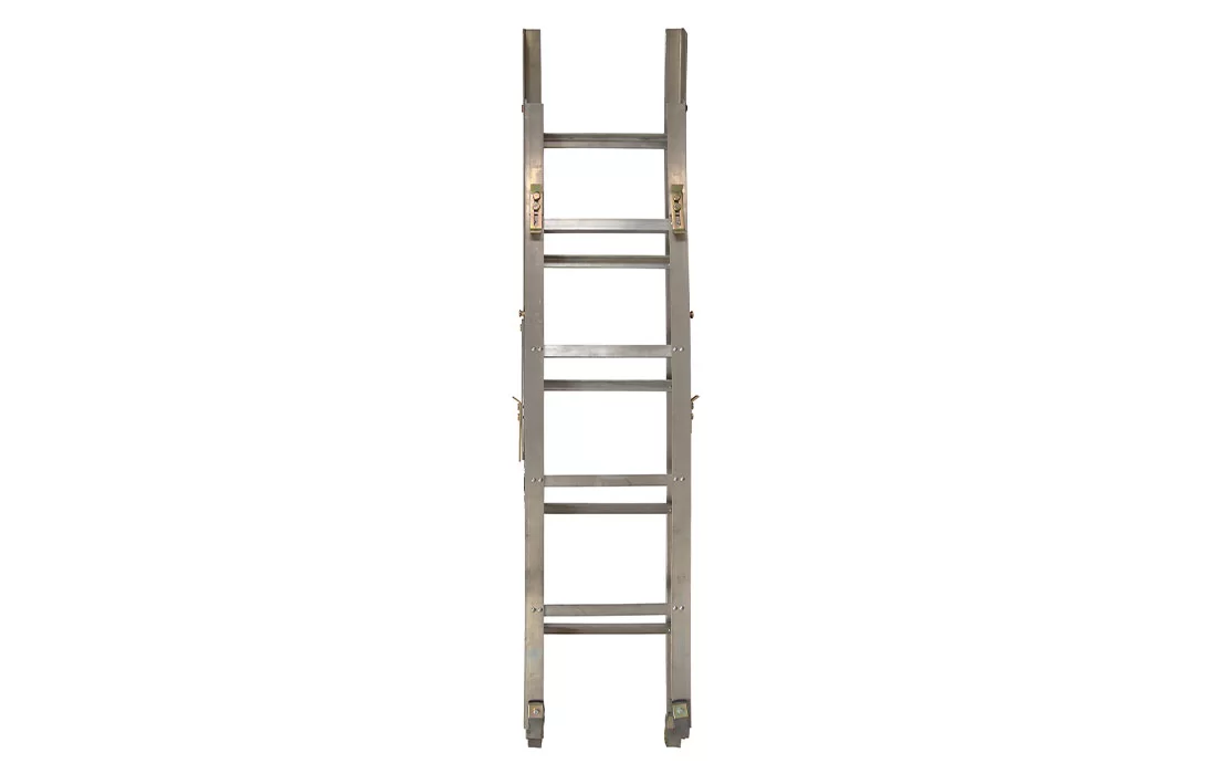 Изготовлена из алюминиевого сплава. Представляет собой конструкцию, состоящую из двух секций с узлами фиксации, предотвращающих самопроизвольное складывание в рабочем положении. Концы лестницы оснащены резиновыми накладками для предотвращения скольжения по основанию кабельного колодца.